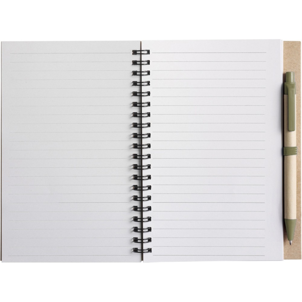 Újrahasznosított spirálfüzet tollal, 60 lapos, zöld/natúr