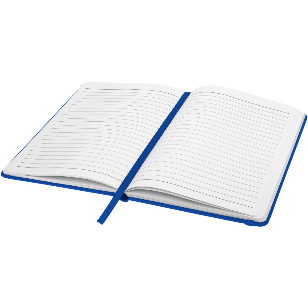 Spectrum A/5 jegyzetfüzet színes fedéllel, jelölőszalaggal és gumipánttal, 96 vonalas lappal (60g/m2). Emblémázás: Szitanyomás, Tamponnyomás, UV nyomtatás