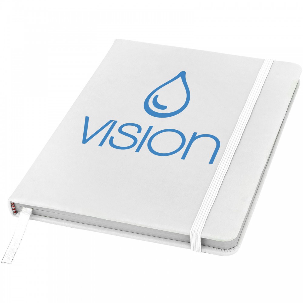 Spectrum A/5 jegyzetfüzet színes fedéllel, jelölőszalaggal és gumipánttal, 96 vonalas lappal (60g/m2). Emblémázás: Szitanyomás, Tamponnyomás, UV nyomtatás