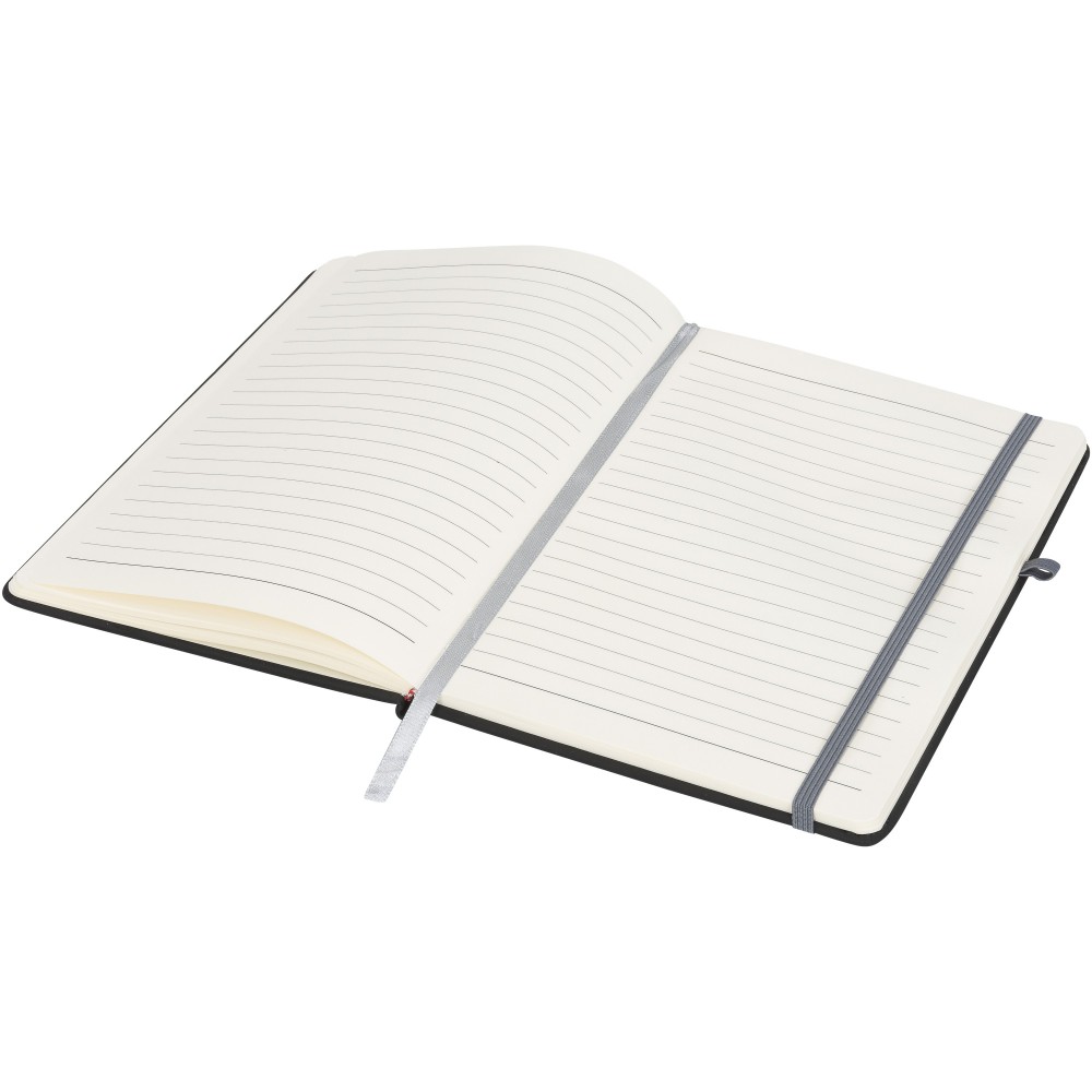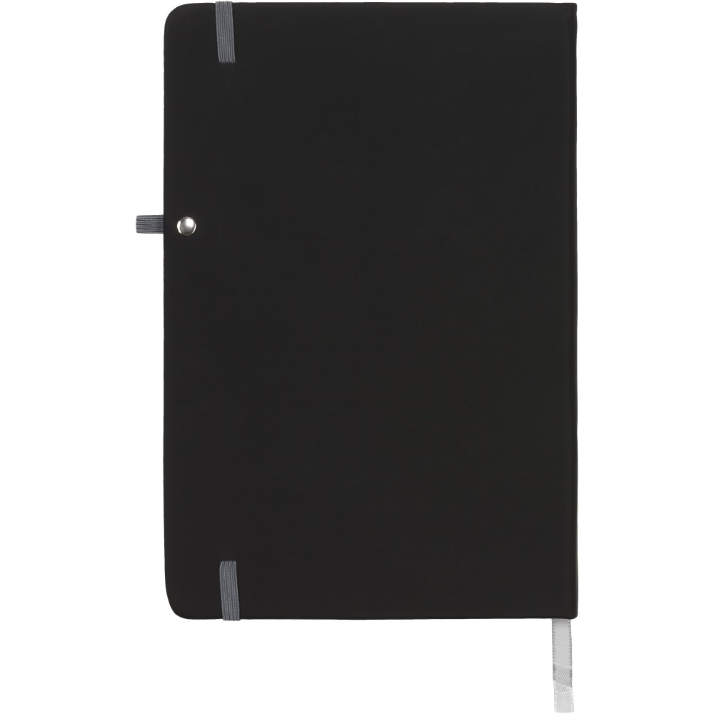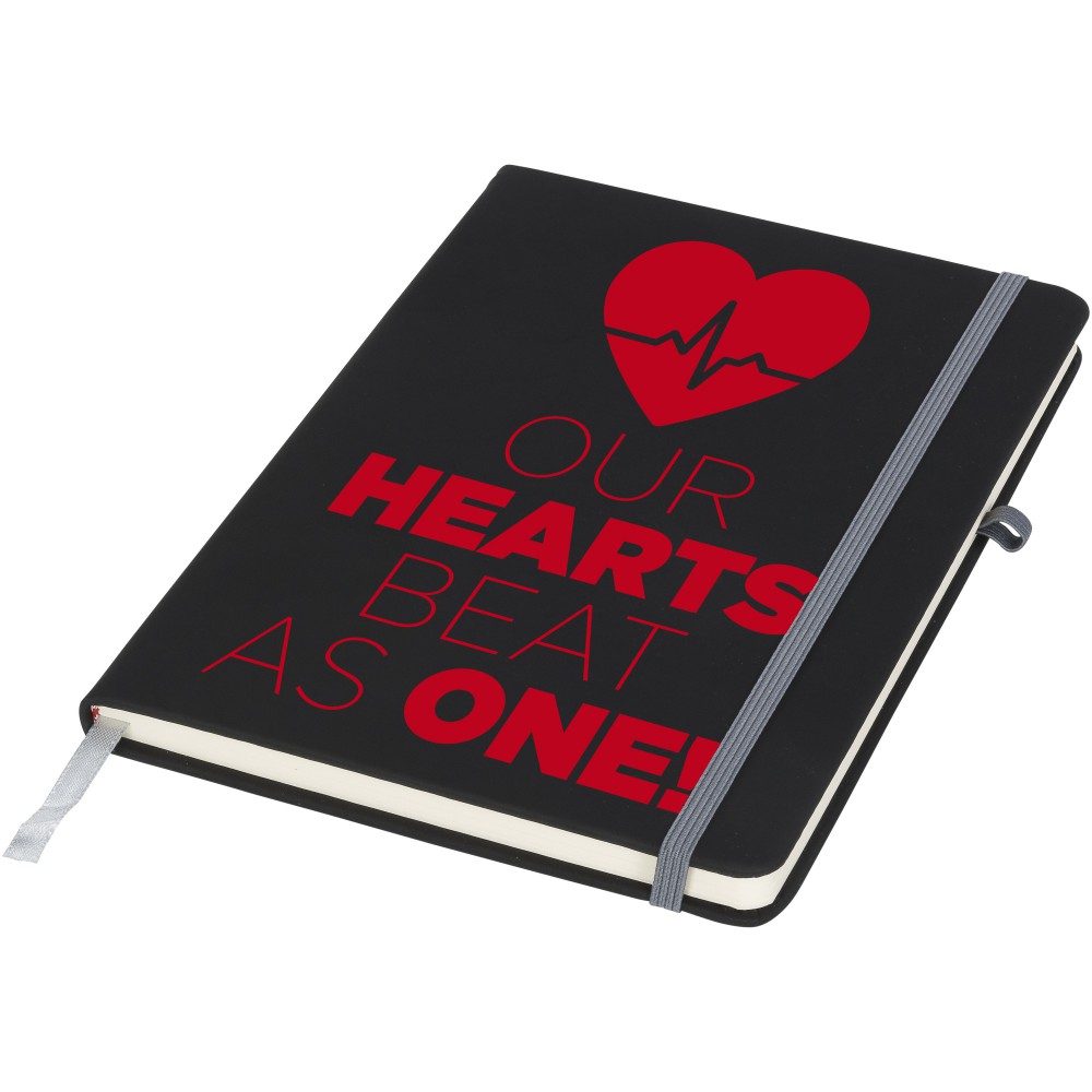 Puha felületű füzet színes gumipánttal, könyvjelzővel és tullhurokkal. 96 krémszínű vonalas lapot tartalmaz. Emblémázás: Szitanyomás, Tamponnyomás, UV nyomtatás