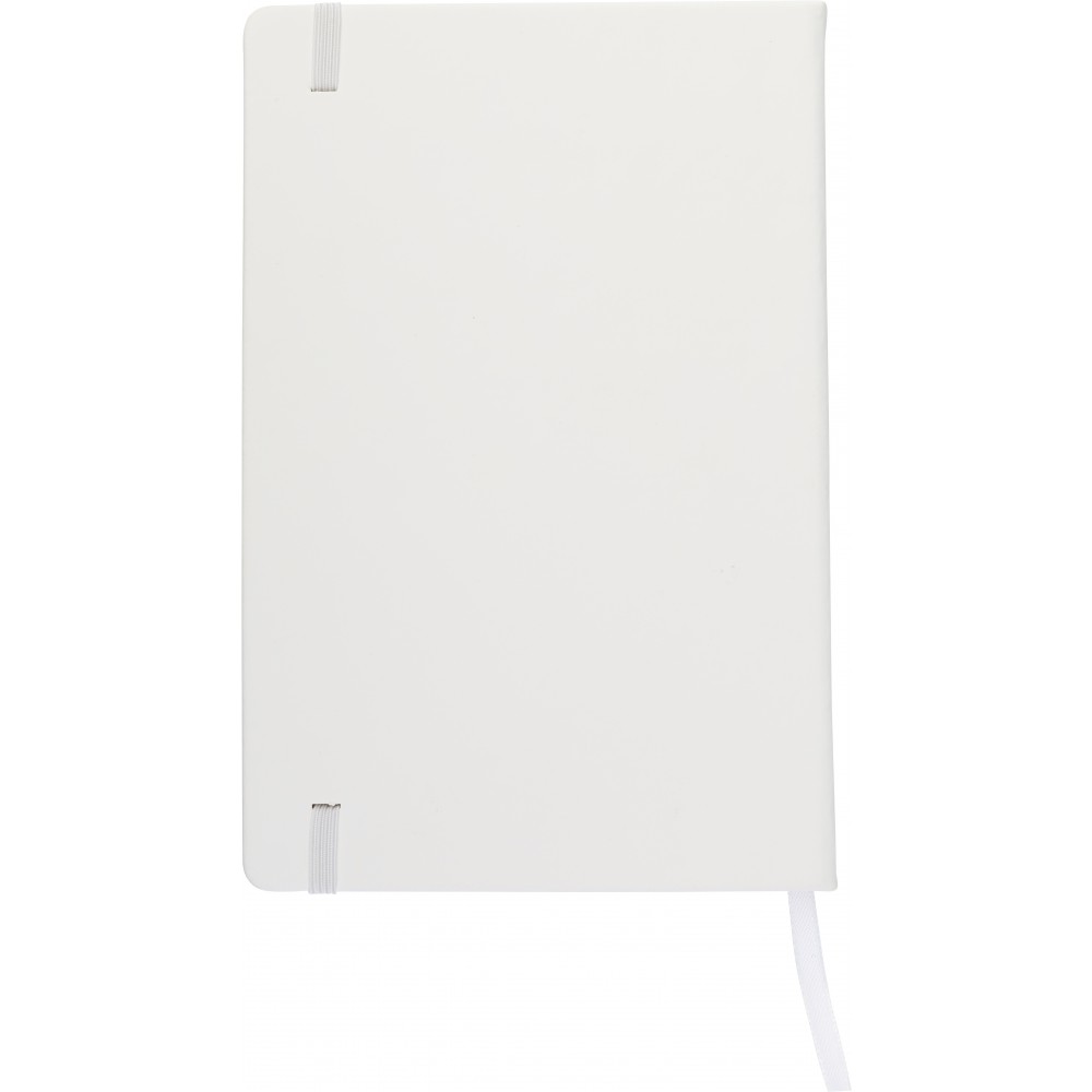 A5-ös jegyzetfüzet 96 üres lappal, gumis záródással és könyvjelzővel. PU. Emblémázás: Szitanyomás, Tamponnyomás, UV nyomtatás
