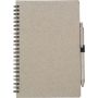 Szalma és PP műanyag felhasználásával készült füzet és golyóstoll (kék tollbetéttel). 70 vonalas lap. Kb. A5-ös méret. Emblémázás: Szitanyomás, Tamponnyomás