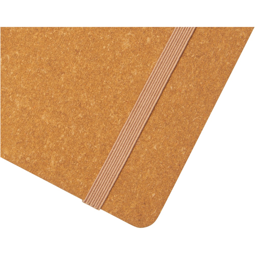 Újrahasznosított bőrből készült jegyzetfüzet gumis záródással, tollhurokkal, szalagjelölővel, nátronpapír zsebbel és 80 lapos (70 g/m2) újrahasznosított, vonalas, krémszínű papírral. Az újrahasznosított bőr borítás tartós és stílusos külső felületet biztosít Az újrahasznosított bőrből készült füzet használatának egyik előnye, hogy stílusos és fenntartható. Az újrahasznosított bőr egyedi textúrája és megjelenése minden füzetnek egyedi karaktert és egyéniséget kölcsönöz. Emblémázás: Szitanyomás, Tamponnyomás