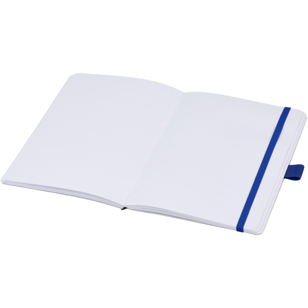 Jegyzetfüzet újrahasznosított vonalas lapokkal (70 g/m2), lekerekített sarkokkal, színes gumi záródással és az 107384-es tollszínhez illő tollhurokkal. Emblémázás: Szitanyomás, Tamponnyomás