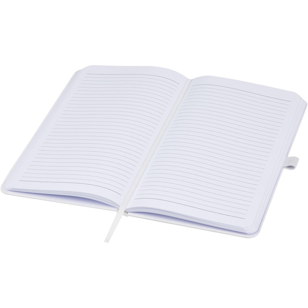 Könnyű, keményfedeles jegyzetfüzet a mindennapi jegyzeteléshez újrahasznosított alapanyagokból készült borítóval. A barna borító kávémaradványt, a zöld borító olajbogyó-maradványt, a fehér pedig kukoricamaradékot tartalmaz. 80 lap (70 g/m2) újrahasznosított fehér vonalas lapot tartalmaz. Emblémázás: Tamponnyomás