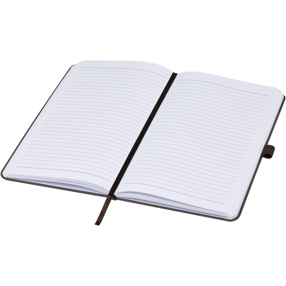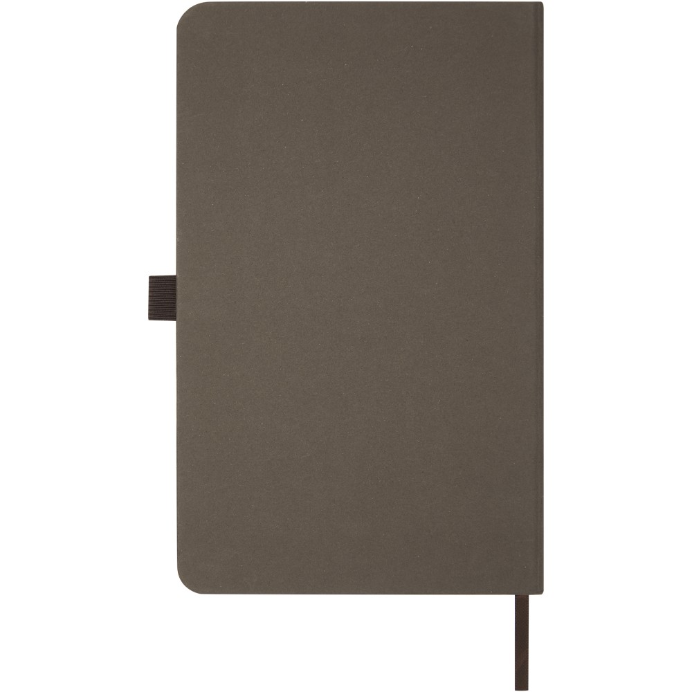 Könnyű, keményfedeles jegyzetfüzet a mindennapi jegyzeteléshez újrahasznosított alapanyagokból készült borítóval. A barna borító kávémaradványt, a zöld borító olajbogyó-maradványt, a fehér pedig kukoricamaradékot tartalmaz. 80 lap (70 g/m2) újrahasznosított fehér vonalas lapot tartalmaz. Emblémázás: Tamponnyomás