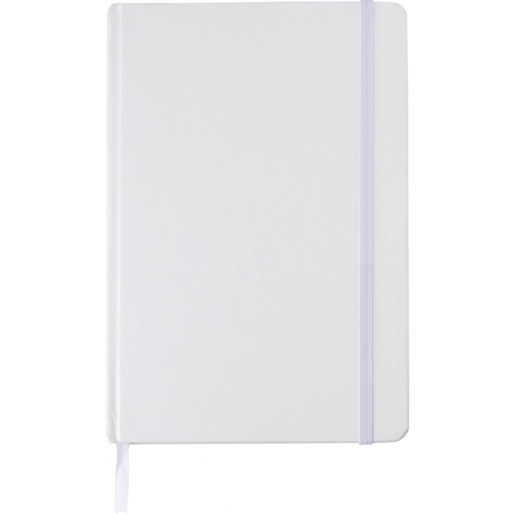 Újrahasznosított kartonból készült A5-ös jegyzetfüzet 80 vonalas lappal. Gumis záródás és könyvjelző szalag. Emblémázás: Tamponnyomás, UV nyomtatás
