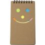 Újrahasznosított kartonból készült, keményfedeles spirálfüzet 80 vonalas, újrahasznosított barna papírlappal. Lapok minősége: 65 g/m2. Az újrahasznosított alapanyagra utaló logó minden lapon látható. Emblémázás: Tamponnyomás