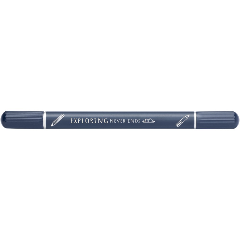 Az RCS tanúsítvánnyal rendelkező Skribi toll- és jegyzetfüzetkészlet részben újrahasznosított poliészterből készül, így fenntartható választás, mivel segít csökkenteni az új nyersanyag felhasználását. Kék tintával ellátott golyóstollat és 80 krémszínű, vonalas lapot tartalmaz, amelyek 80 g/m2 súlyú, fenntartható forrásból származó, újrahasznosított papírból készültek. A toll írási hossza 1000 méter. Emblémázás: Szitanyomás