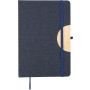300D RPET füzet (kb. A5-ös méret) 80 vonalas lappal. A felhajtható borító telefontartóvá alakítható. A borítón bambusz díszítés. Emblémázás: Szitanyomás, Tamponnyomás