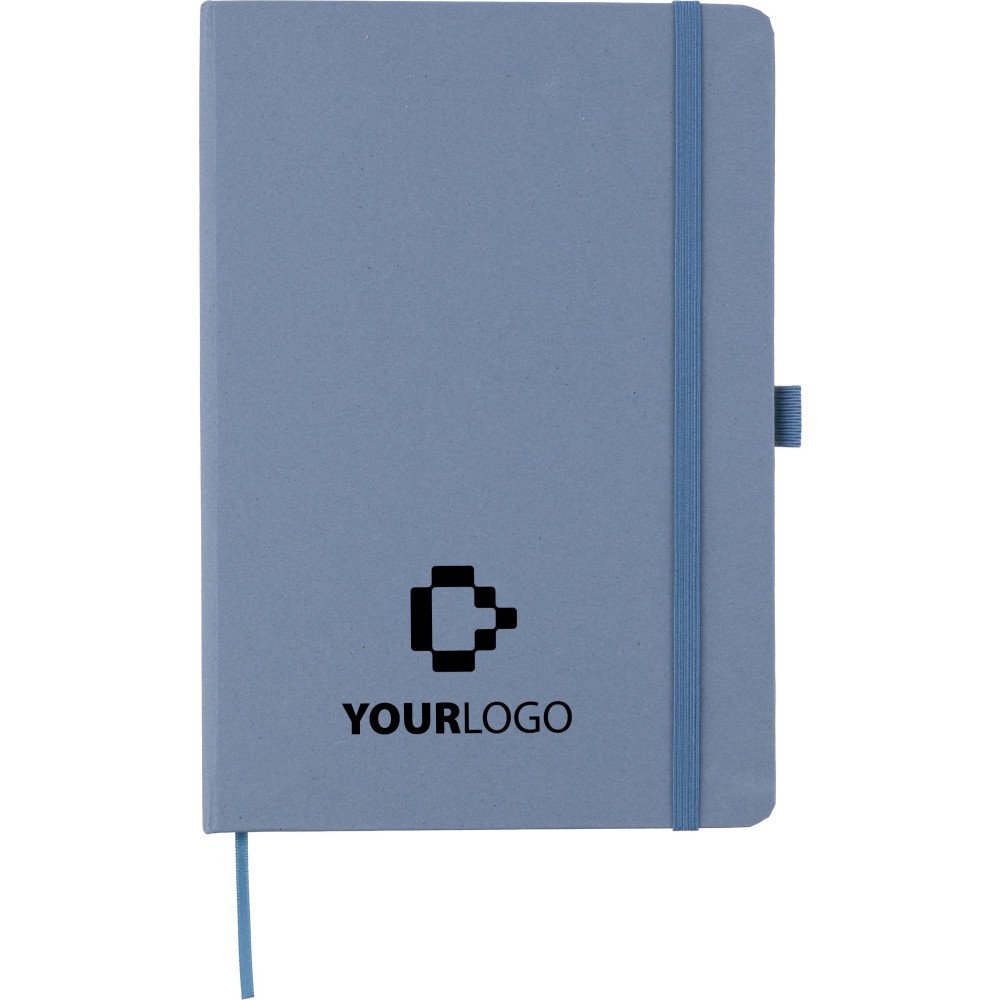 Újrahasznosított biohulladékból és kartonból készült A5-ös jegyzetfüzet 80 vonalas lappal, szójatintával nyomtatva. Minden füzet hátoldalán a hivatkozott alapanyag színének megfelelő dombornyomás található: zöld a citrusfélék, piros a cseresznye, kék a levendula, natúr a szőlő és a barna a mandula alapanyagra utal. A jegyzetfüzet olasz Favini papírral van bevonva. Emblémázás: Szitanyomás, Tamponnyomás