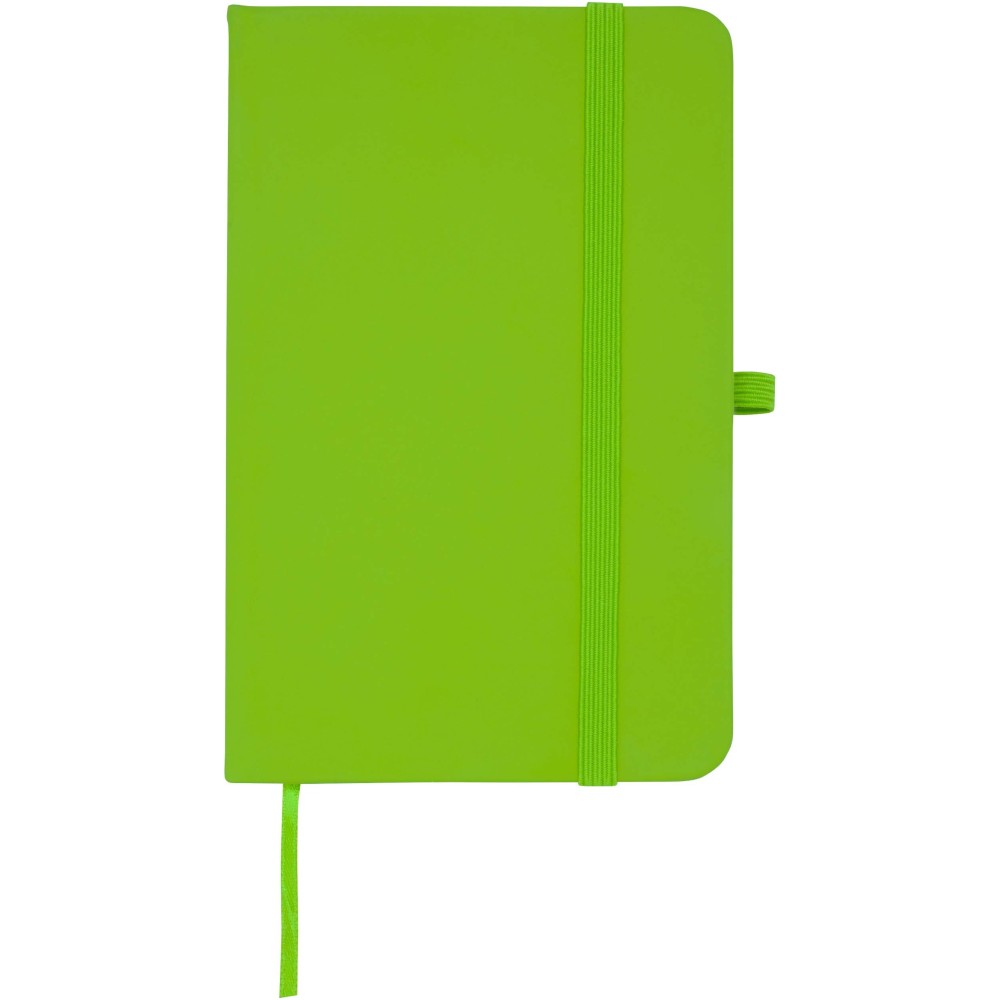 A Spectrum Plus A6 keményfedeles jegyzetfüzet lekerekített sarkokkal nemcsak az irodai mindennapok elengedhetetlen kelléke, hanem remek lehetőség márkád népszerűsítésére is. A jegyzetfüzet puha tapintású borítóval rendelkezik és 80 vonalas, krémszínű, 70 g/m2-es lapból áll, amely tökéletes gyors ötletek vagy hosszabb jegyzetek rögzítésére. A jegyzetfüzet tolltartó hurokkal, gumiszalagos záródással, könyvjelzővel és harmonikazsebbel van ellátva. Emblémázás: Tamponnyomás