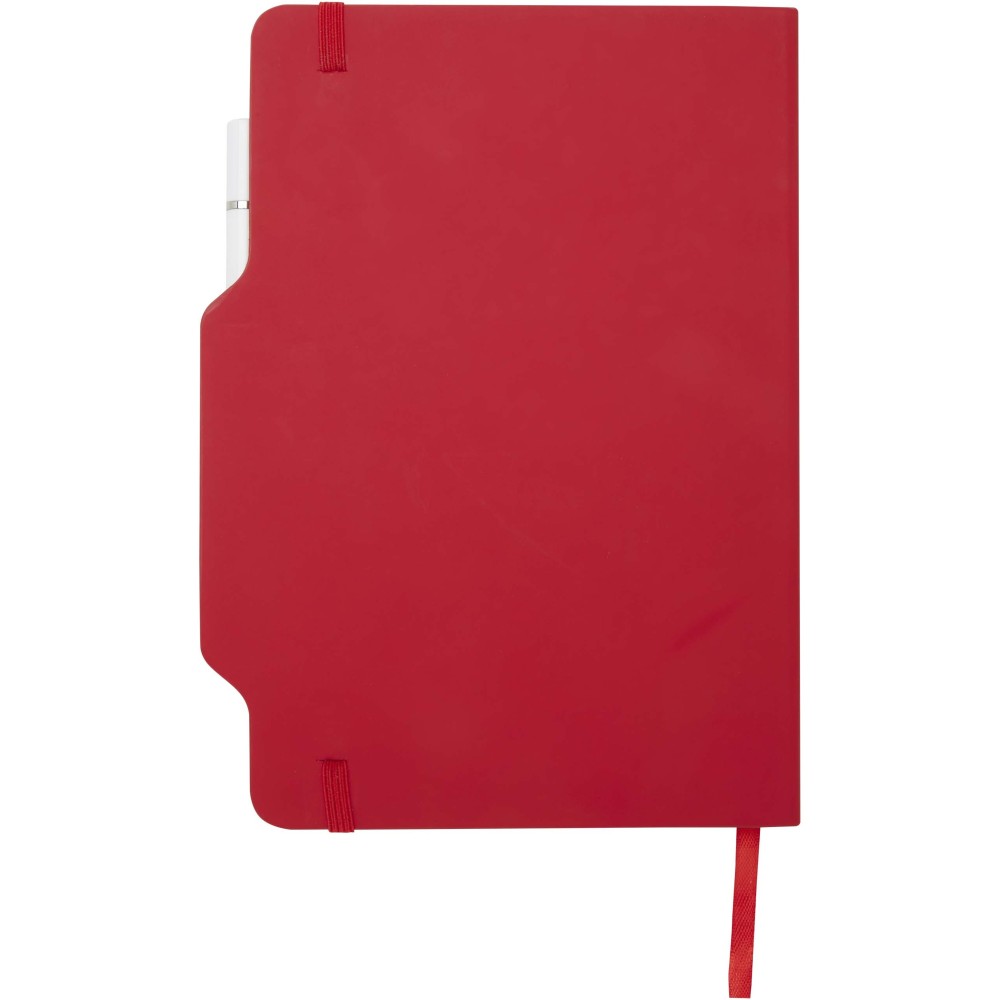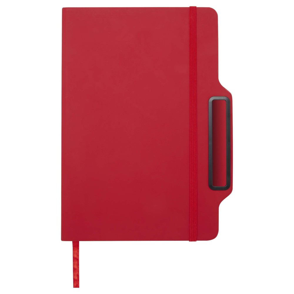 A Nexus A5 keményfedeles jegyzetfüzet egy toll/ceruza kombinációval praktikus és stílusos választás. 80 krém színű, 70 g/m2 vonalas lapot tartalmaz, lekerekített sarkokkal, rugalmas zárópánttal és szalagkönyvjelzővel. A kétvégű toll egyik oldala fekete tintával író golyóstoll, a másik oldala ceruza. A toll íráshossza: 1000 méter. Tollhegy mérete: 1,00 mm. Emblémázás: Tamponnyomás