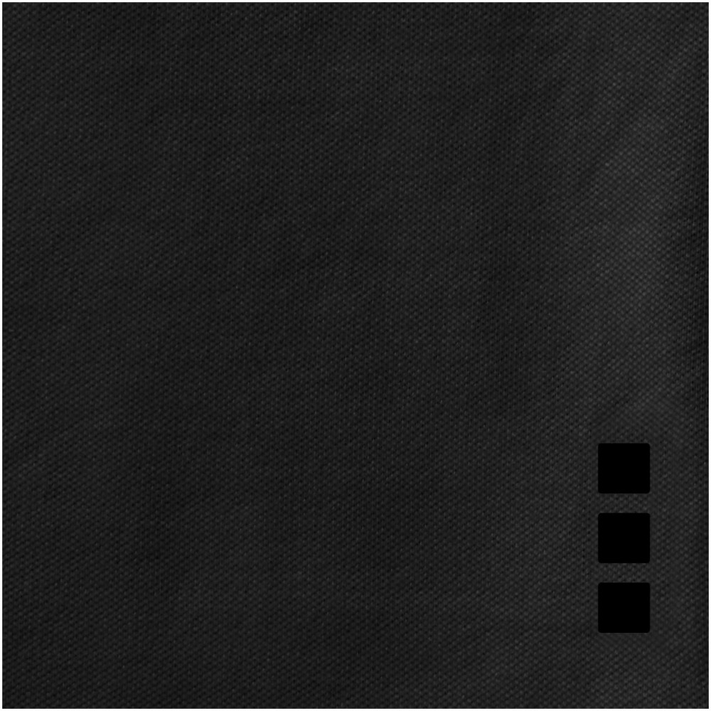 Normál szabásvonal. A férfi modell 3, a női 4 gravírozott, színben illeszkedő gombbal. Az oldalsliccben kontrasztos színű V-betét. Rejtett öltések. Tónusos logónyomat hátul. Kontrasztos színű félhold nyakbetét. Szatén szalagerősítés a nyakrészen. Saját anyagából készült gallér. Dupla piké, 95% pamut és 5% elasztán. 200g/m2. Emblémázás: Hímzés, Szitanyomás