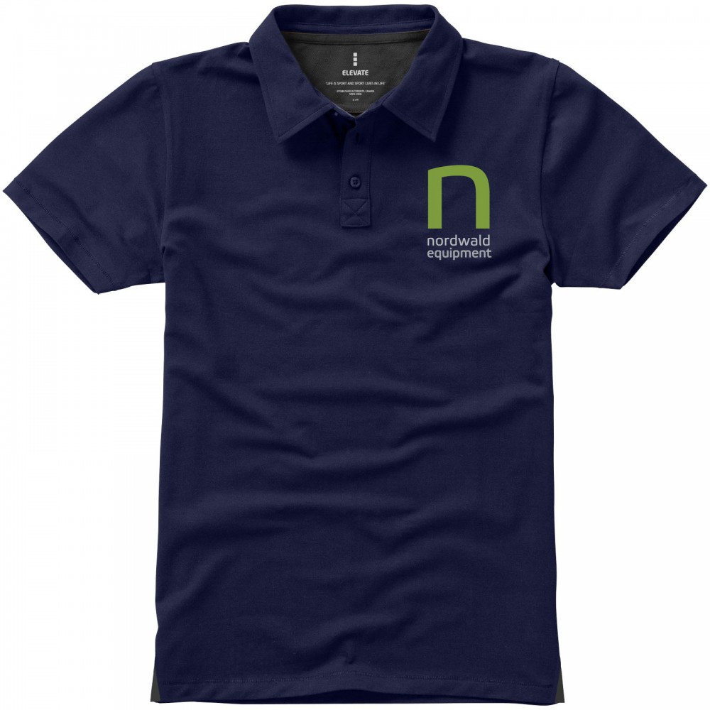 Normál szabásvonal. A férfi modell 3, a női 4 gravírozott, színben illeszkedő gombbal. Az oldalsliccben kontrasztos színű V-betét. Rejtett öltések. Tónusos logónyomat hátul. Kontrasztos színű félhold nyakbetét. Szatén szalagerősítés a nyakrészen. Saját anyagából készült gallér. Dupla piké, 95% pamut és 5% elasztán. 200g/m2. Emblémázás: Hímzés, Szitanyomás