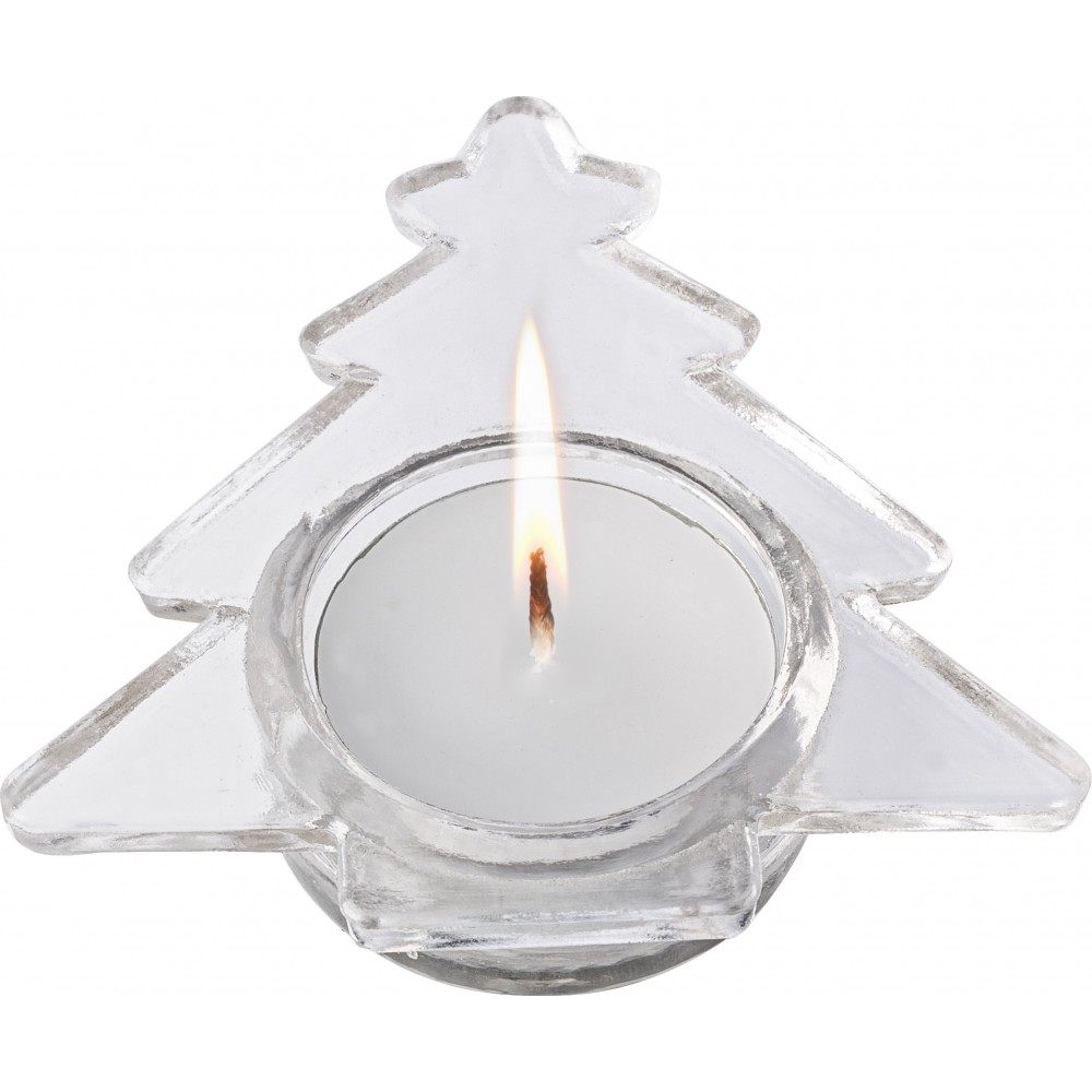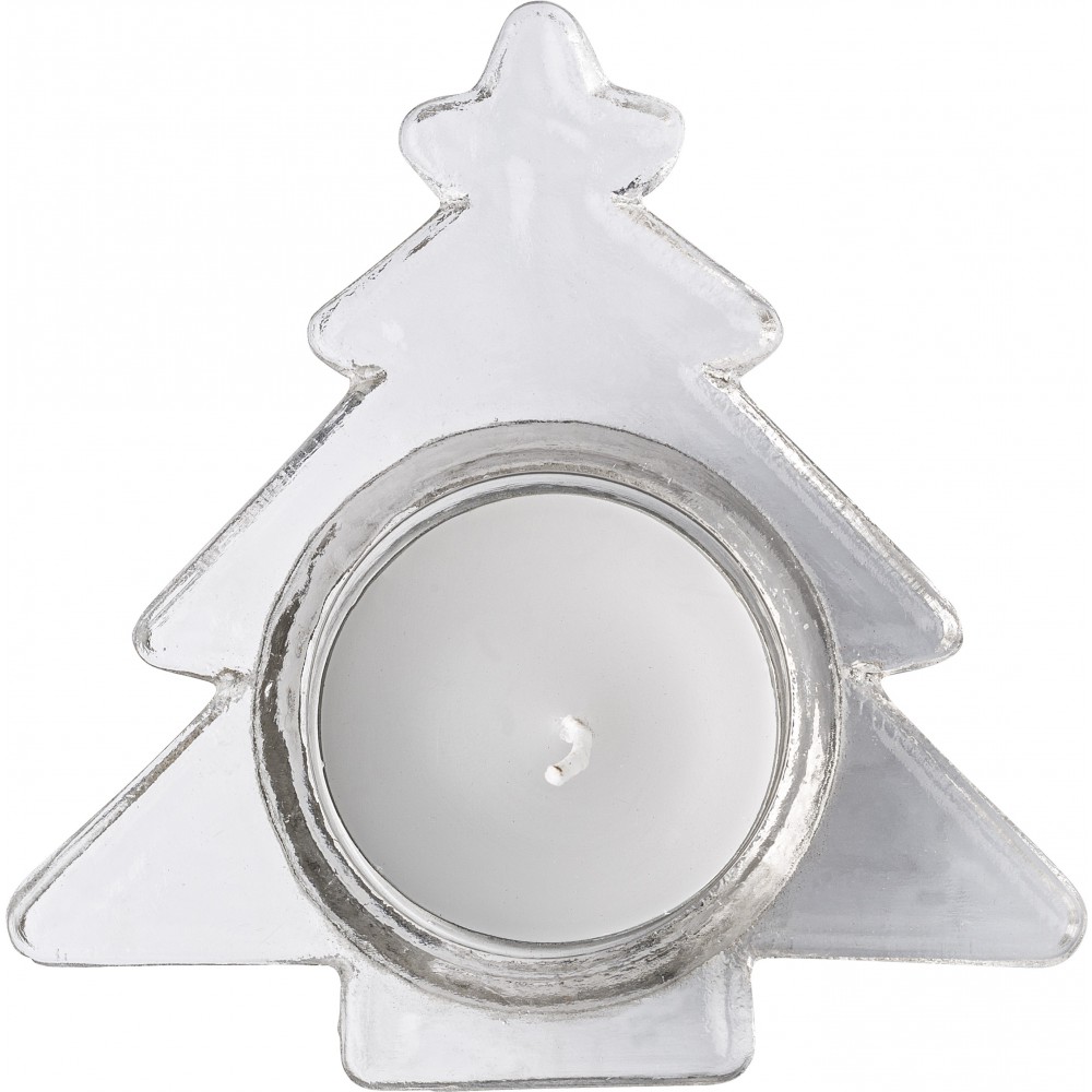 Üveg mécsestartó fenyőfa, ezüst