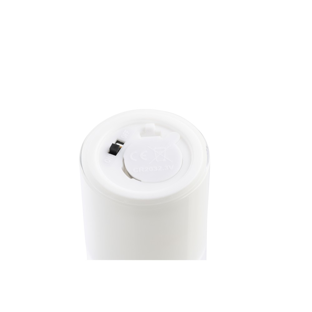 PP LED gyertya üvegtartóban, valósághű lánghatással. Elemmel együtt, körülbelül 100 órás égési idővel. Beltéri használatra tervezve. Egyenként csomagolva, barna kartondobozban. Emblémázás: Tamponnyomás