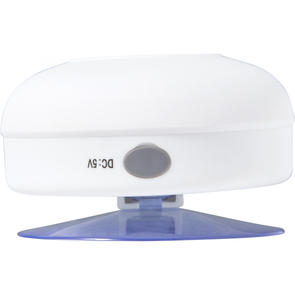 Vízálló Bluetooth hangszóró. Tökéletes megoldás bejövő hívások fogadására kéz használata nélkül vagy zenét hallgatni a zuhany alatt. Sima felületeken tapadókoronggal rögzíthető. Műanyag. Emblémázás: Tamponnyomás