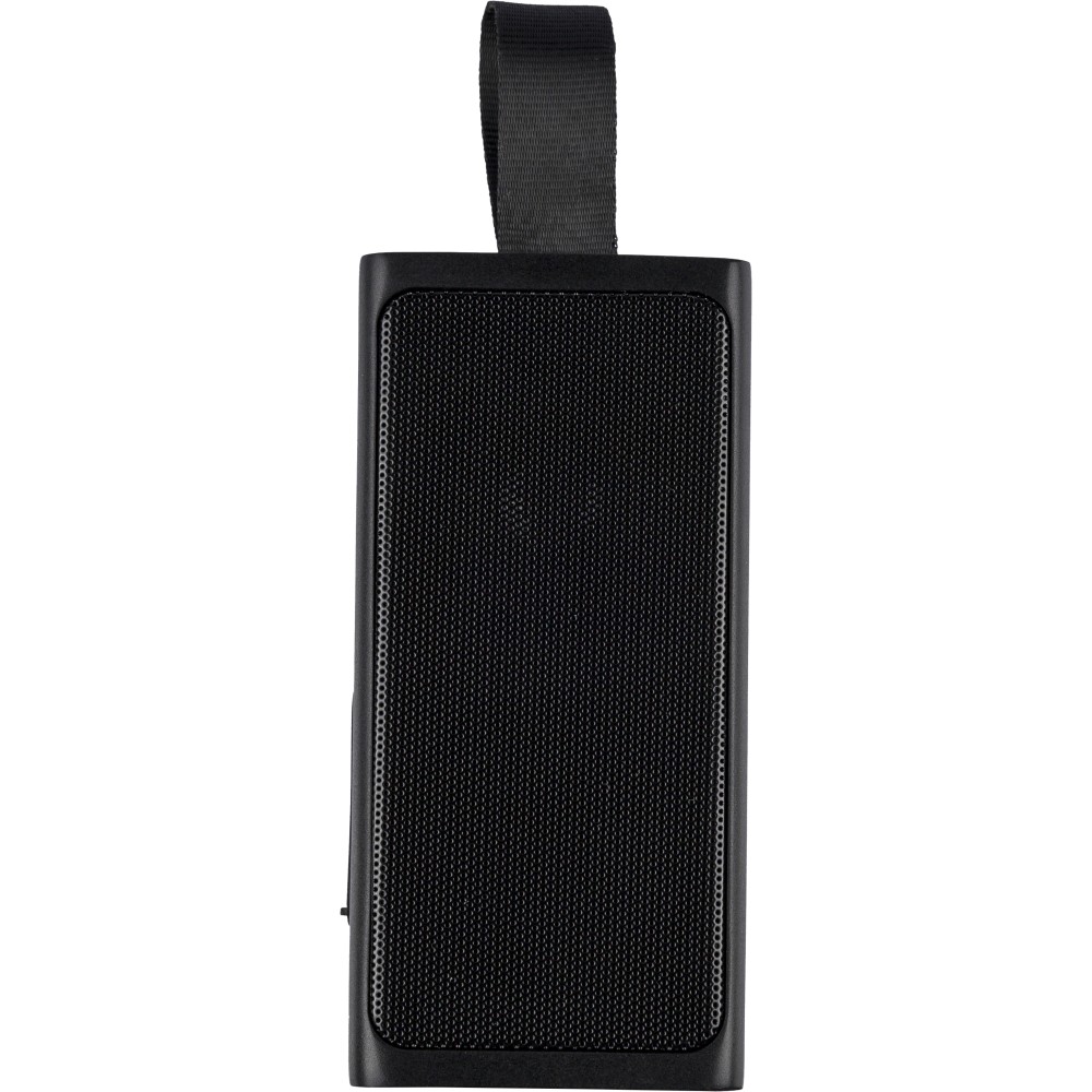 Újrahasznosított ABS-ből készült 5W teljesítményű hangszóró COB LED zseblámpával, szilikon hurokkal és 5.4-es vezeték nélküli technológiával. 500 mAh kapacitású akkumulátorral rendelkezik, 5V/500 mA bemenettel. Kültéri kialakítású, a terméktesten recycled (újrahasznosított) alapanyagra utaló logó található. Barna dobozba csomagolva.