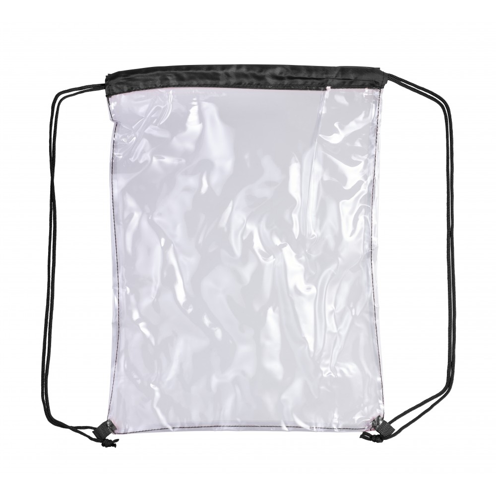 Átlátszó PVC tornazsák színes szegéllyel és összehúzó zsinórral. Emblémázás: Szitanyomás