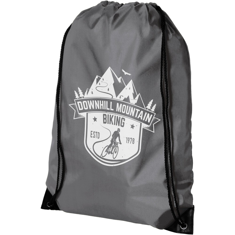 Húzózsinórral zárható nagy fő rekesz. A húzózsinór kialakítása miatt vállon vagy hátizsákként is használható. 210D Polyester. Emblémázás: Szublimálás, Szitanyomás