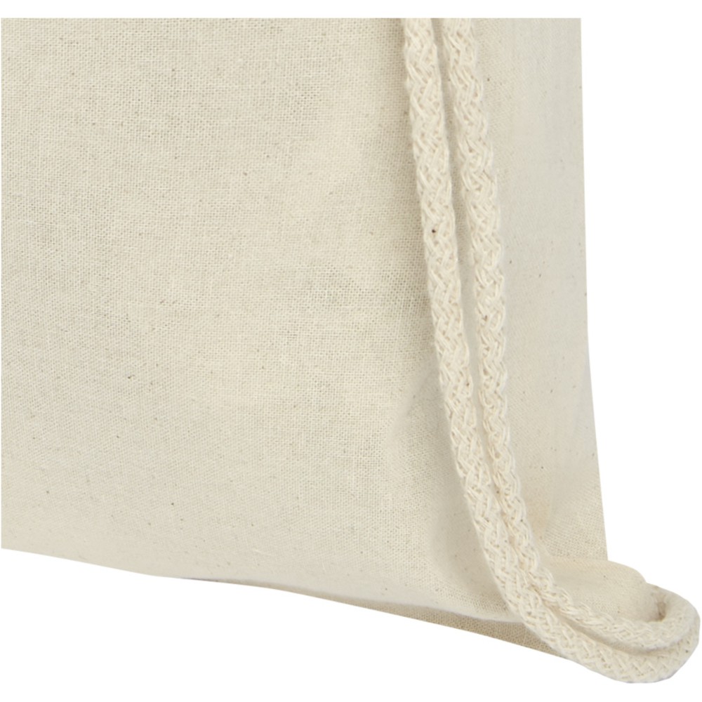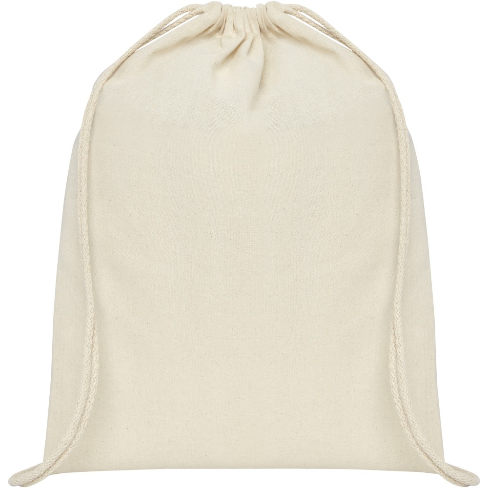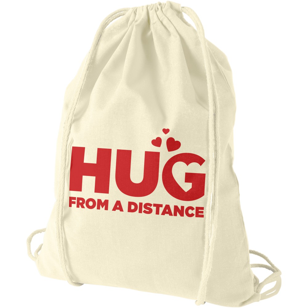 Húzózsinórral zárható nyitott fő rekesz. 100 g/m2 pamut. Emblémázás: Szitanyomás