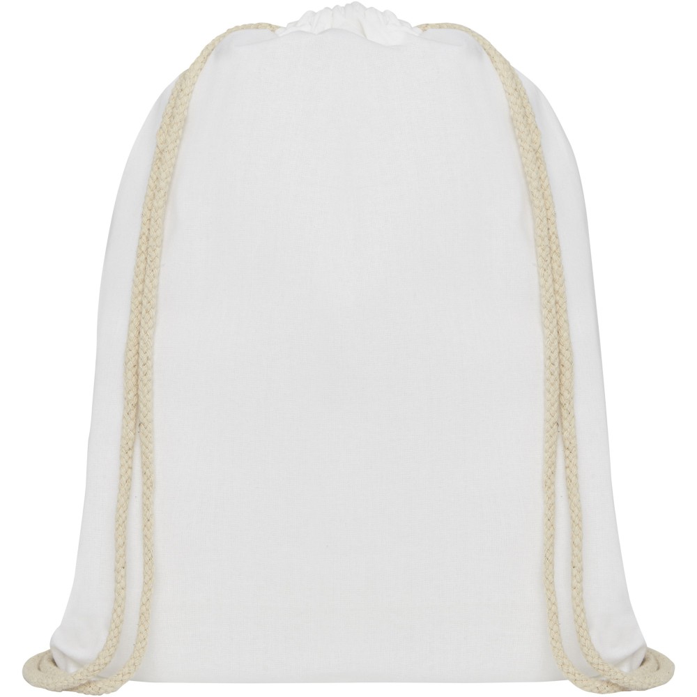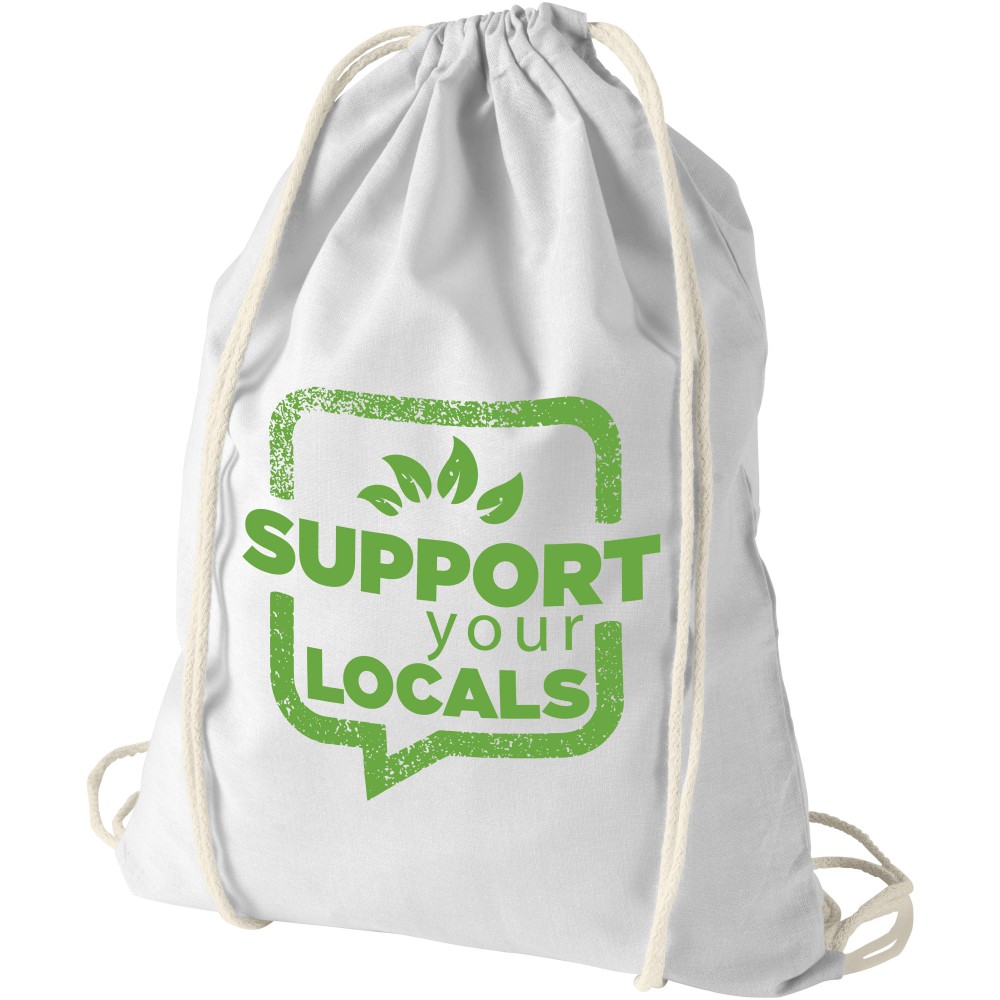 Húzózsinórral zárható nyitott fő rekesz. 100 g/m2 pamut. Emblémázás: Szitanyomás