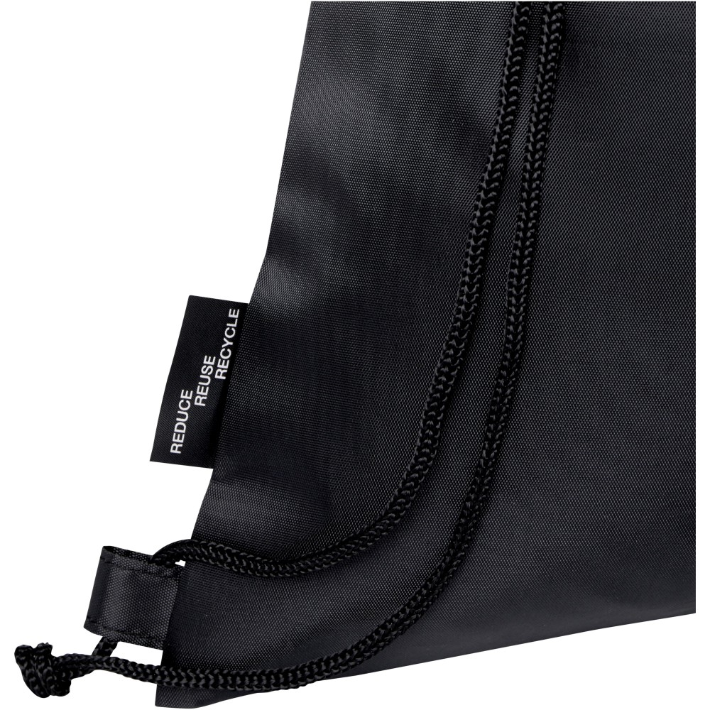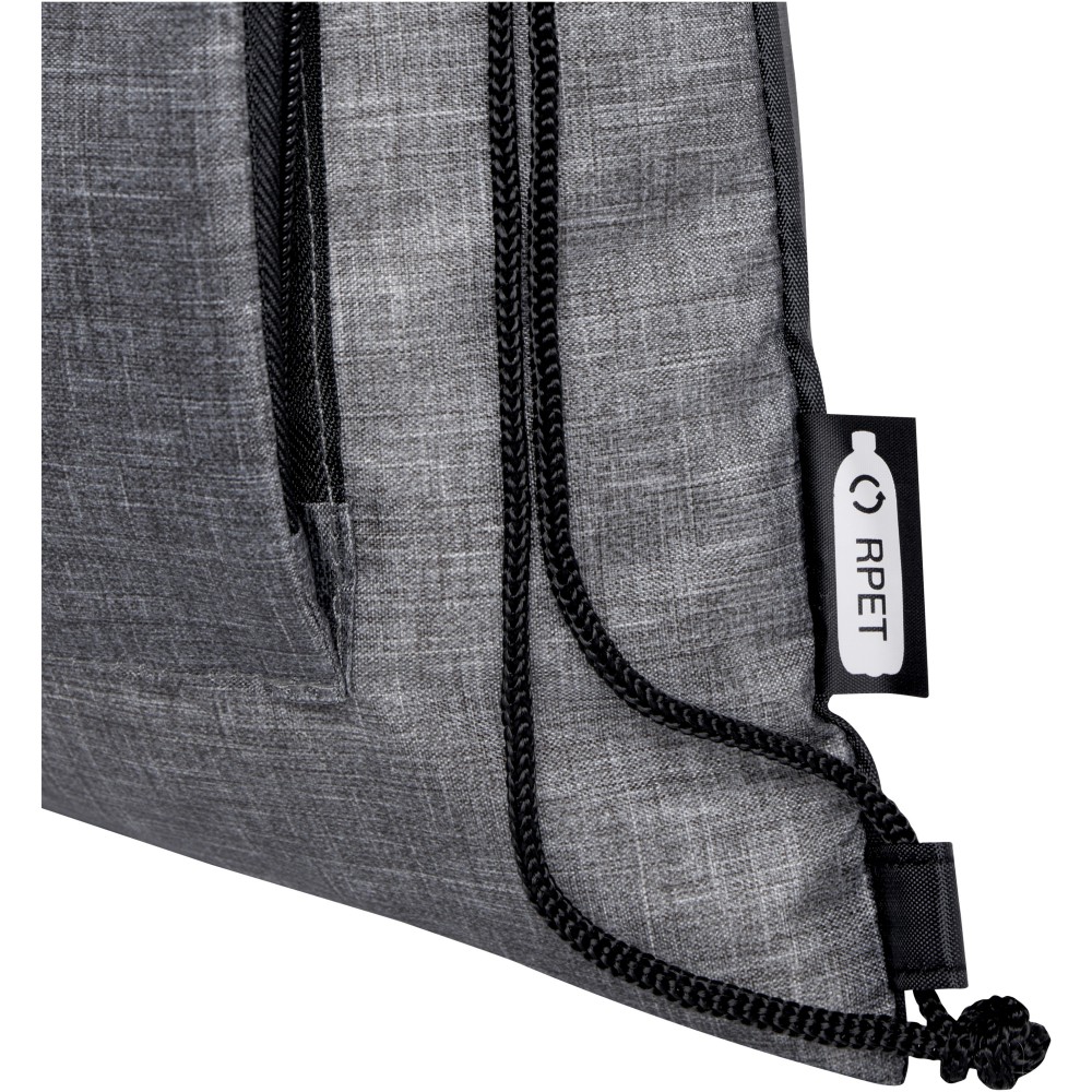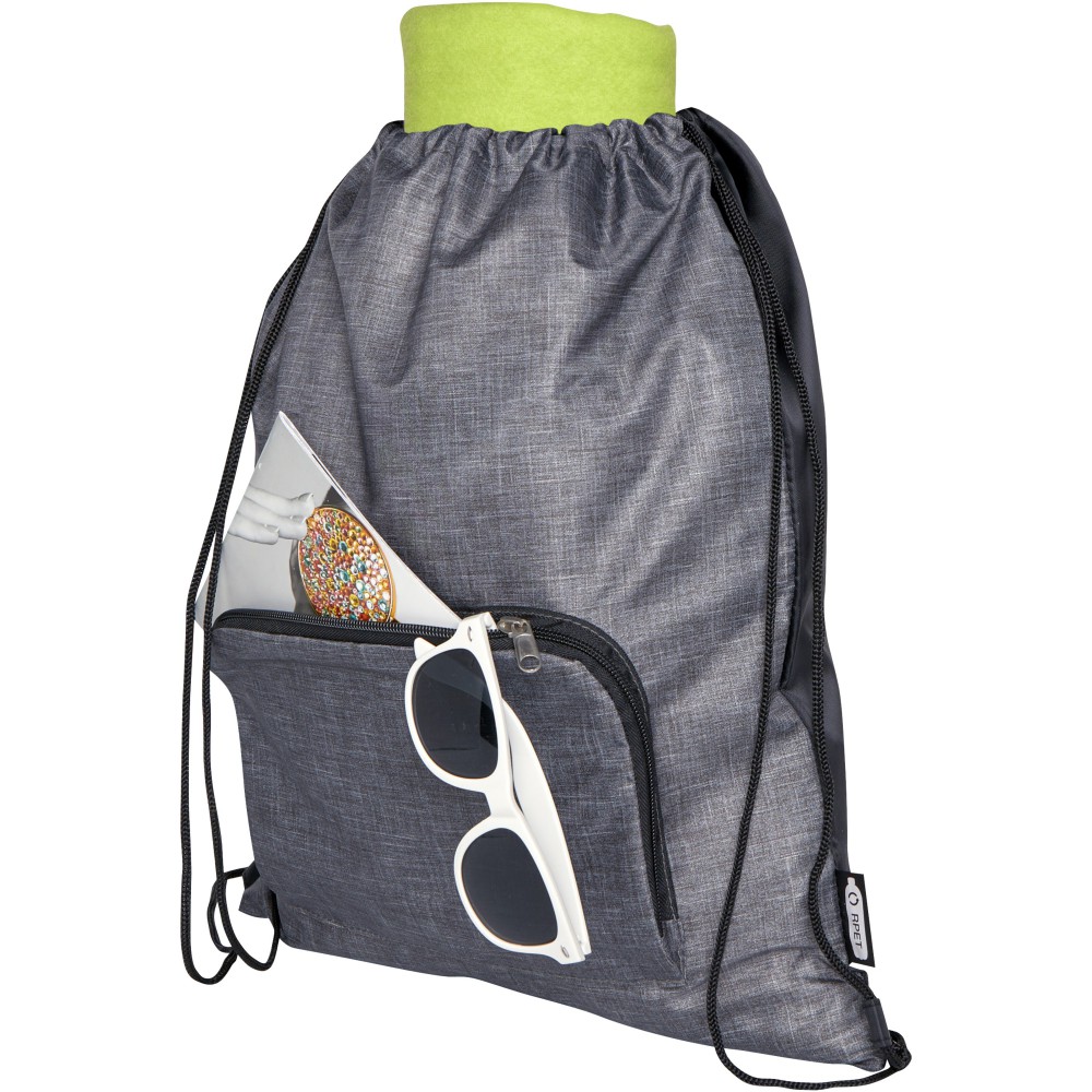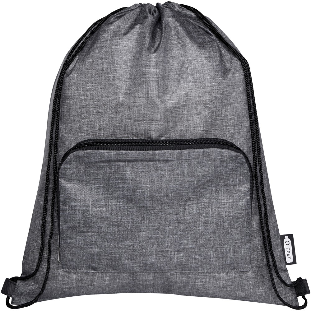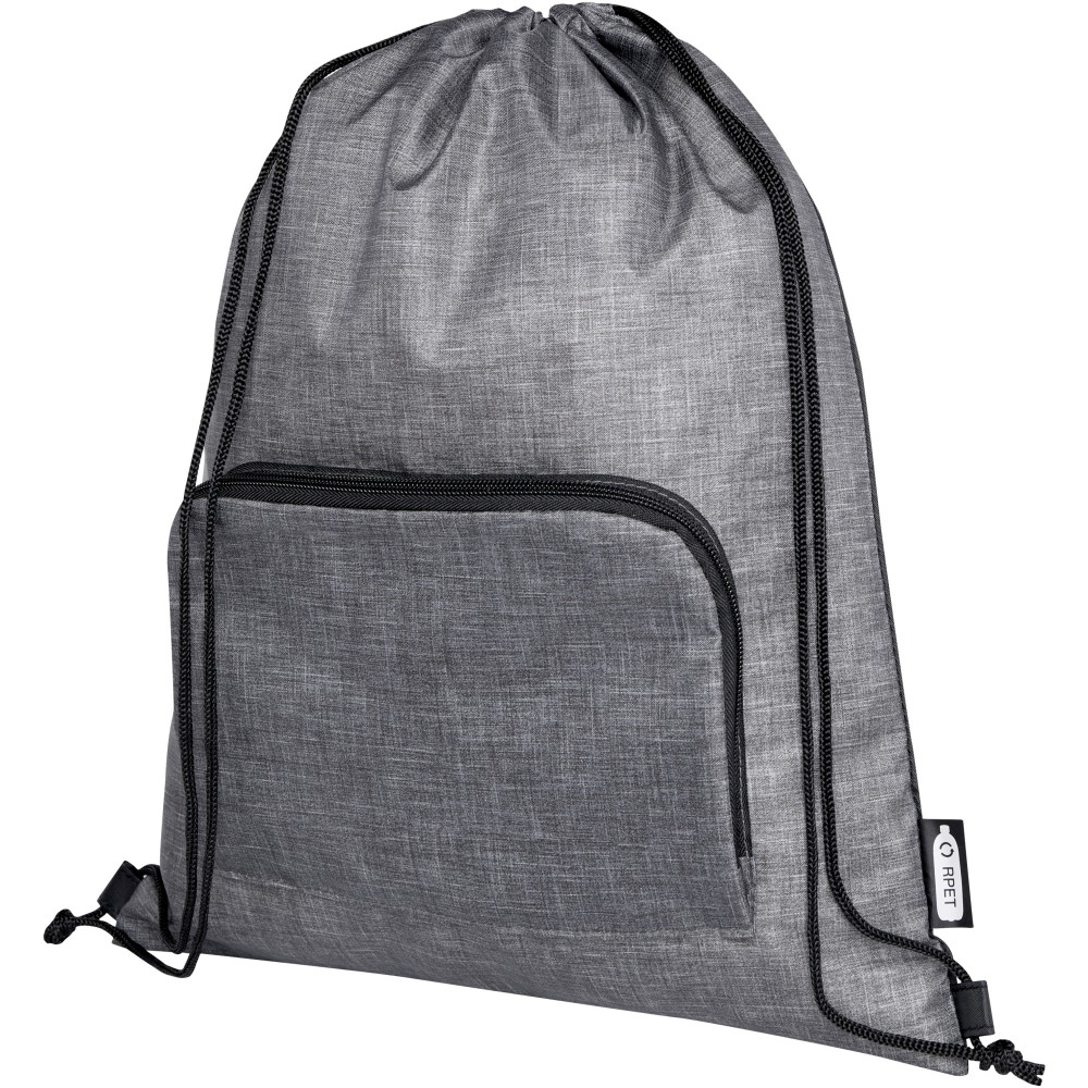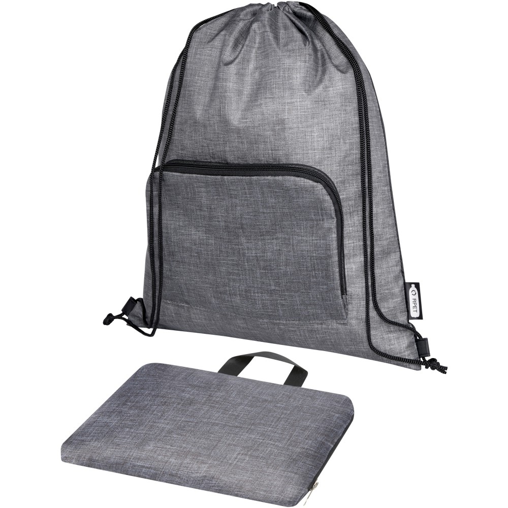 Az Ash összehajtható, újrahasznosított húzózsinóros táska egy cipzáras elülső rekesszel és egy cipzáras elülső zsebbel rendelkezik, amelybe a táska könnyen összecsukható a könnyű szállítás és tárolás érdekében. Emblémázás: Szitanyomás