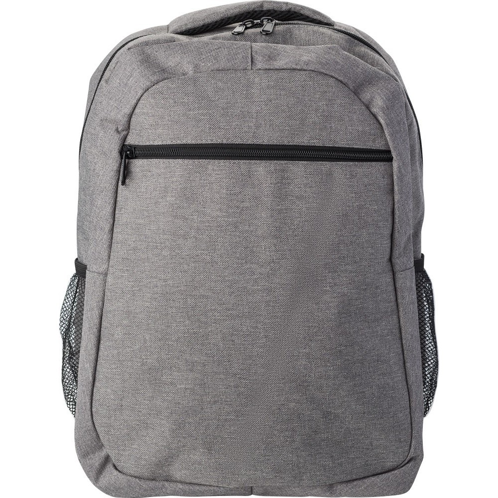 Hátizsák cipzáras elsőzsebbel és állítható vállpántokkal. Belső zseb laptop számára 15"-ig. 2 oldalon hálós zseb. 600D poliészter. Emblémázás: Szitanyomás