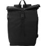 Roll-top hátizsák. Két cipzáras zseb az oldalán, egy nagy rekesz. Tépőzárral és csattal záródik. 600D RPET poliészter. Emblémázás: Hímzés, Szitanyomás