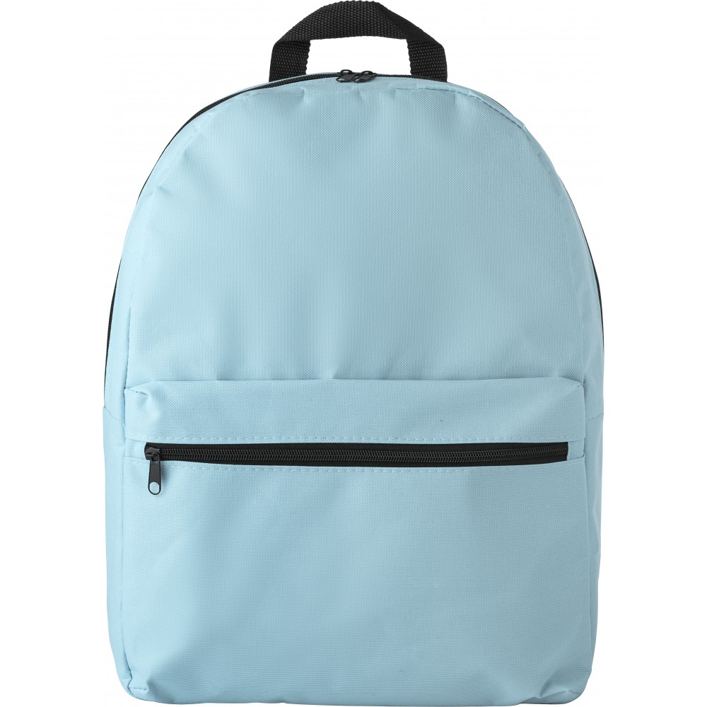 Hátizsák cipzáros elsőzsebbel, állítható, párnázott vállpánttal. 600D poliészter. Emblémázás: Szitanyomás
