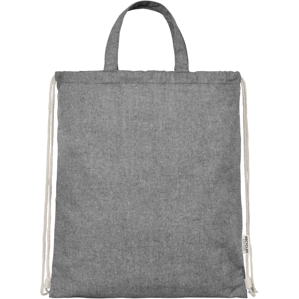 Zsinóros hátizsák 150 g/m2 súlyú újrahasznosított pamut-poliészter keverékből. Tágas, pamut zsinórral záródó, természetes színű fő rekesz. Az újrahasznosított pamutot a textilgyárakban a vágási folyamat során keletkező hulladékból állítják elő. A hasonló színeket összekeverik, így nincs szükség további festésre. Az újrahasznosított pamut természetéből adódóan nagyon enyhe színeltérések előfordulhatnak. Minden hátizsákhoz egy Aware nyomjelző is tartozik, ez az innovatív funkció lehetővé teszi a felhasználók számára, hogy egy QR-kód segítségével nyomon követhessék a termék eredetét és útját, növelve az ellátási lánc átláthatóságát és elősegíti a termék és a gyártási folyamat közötti szorosabb kapcsolatot. Teherbírás: 5 kg. Emblémázás: Szitanyomás