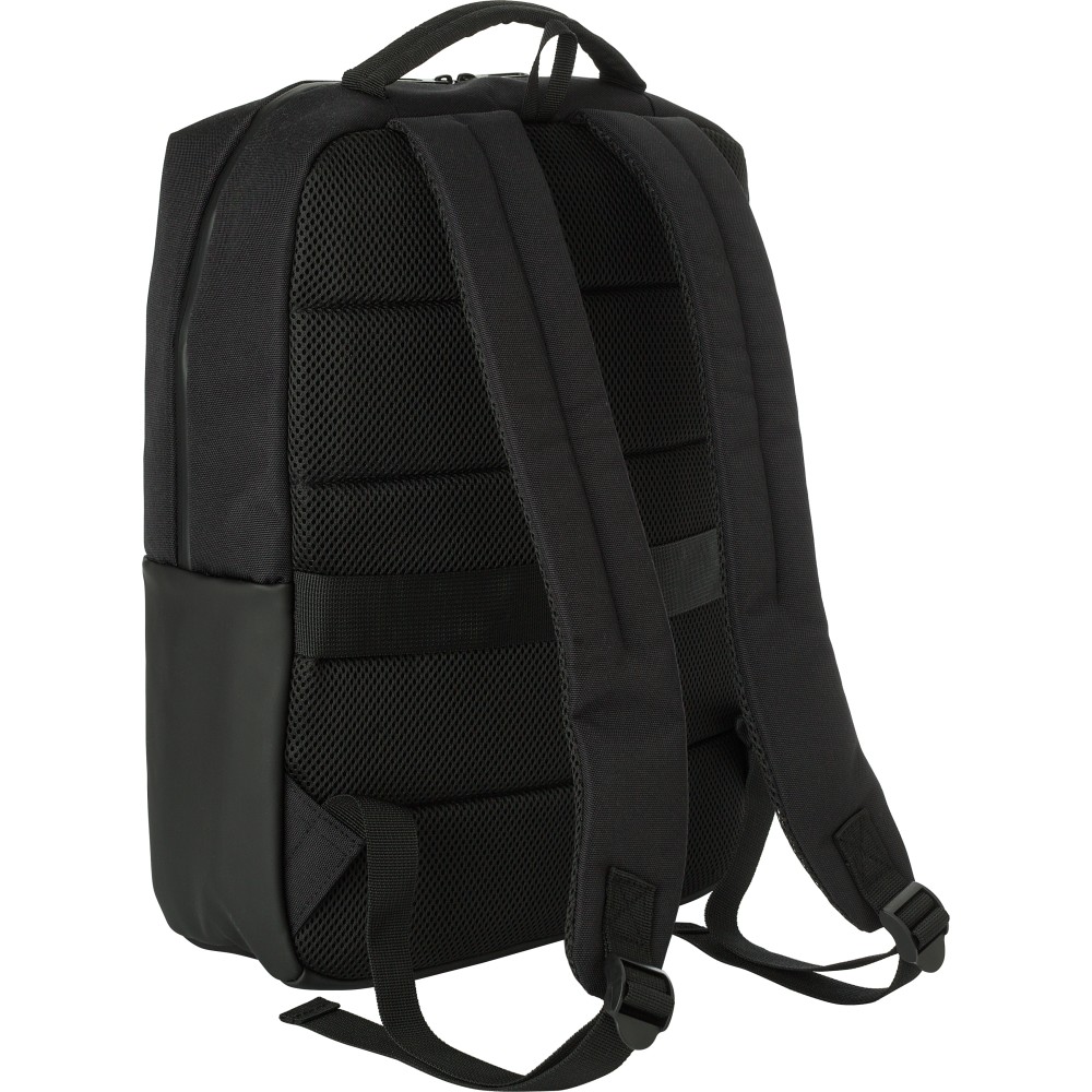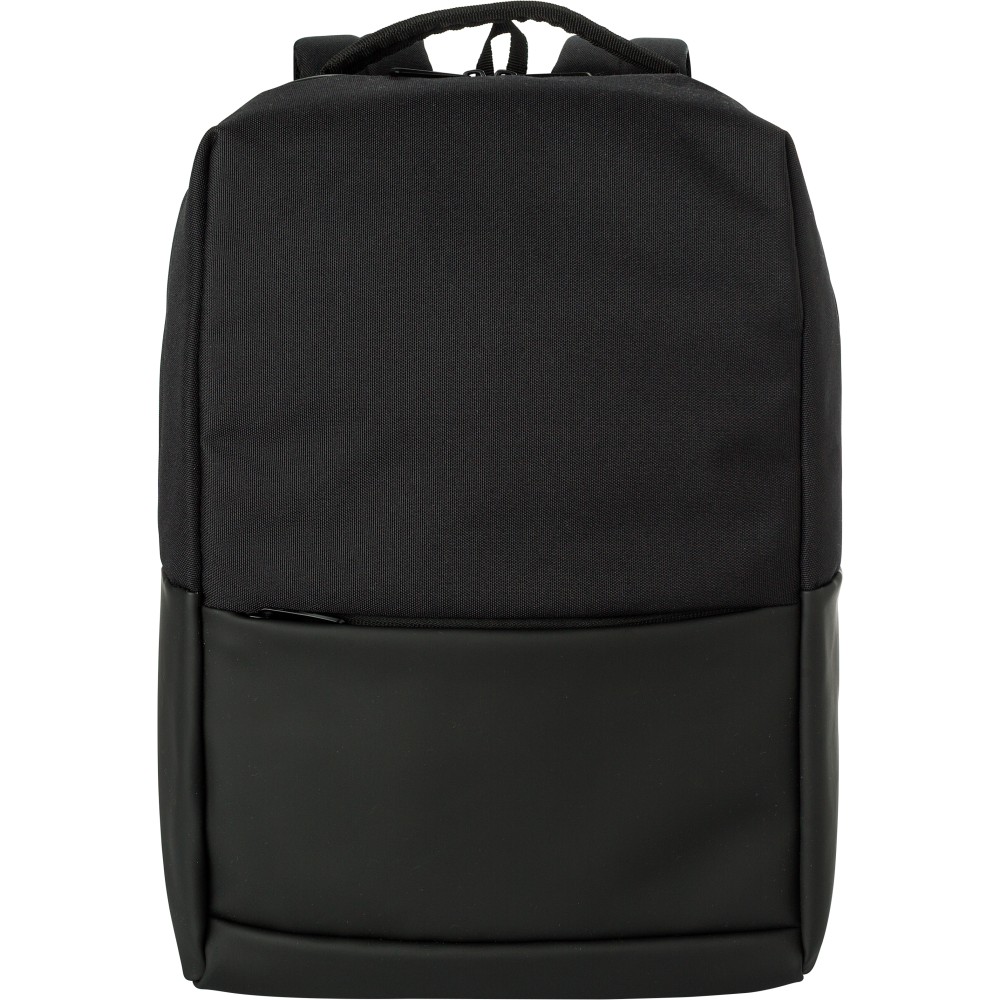 Poliészter (600D) laptophátizsák (15 colos). Egy nagy cipzáras rekesz a tetején, belül több rekesszel. Kis cipzáras rekesz az elején. Megerősített hátoldal és állítható pántok. Emblémázás: Szitanyomás