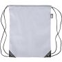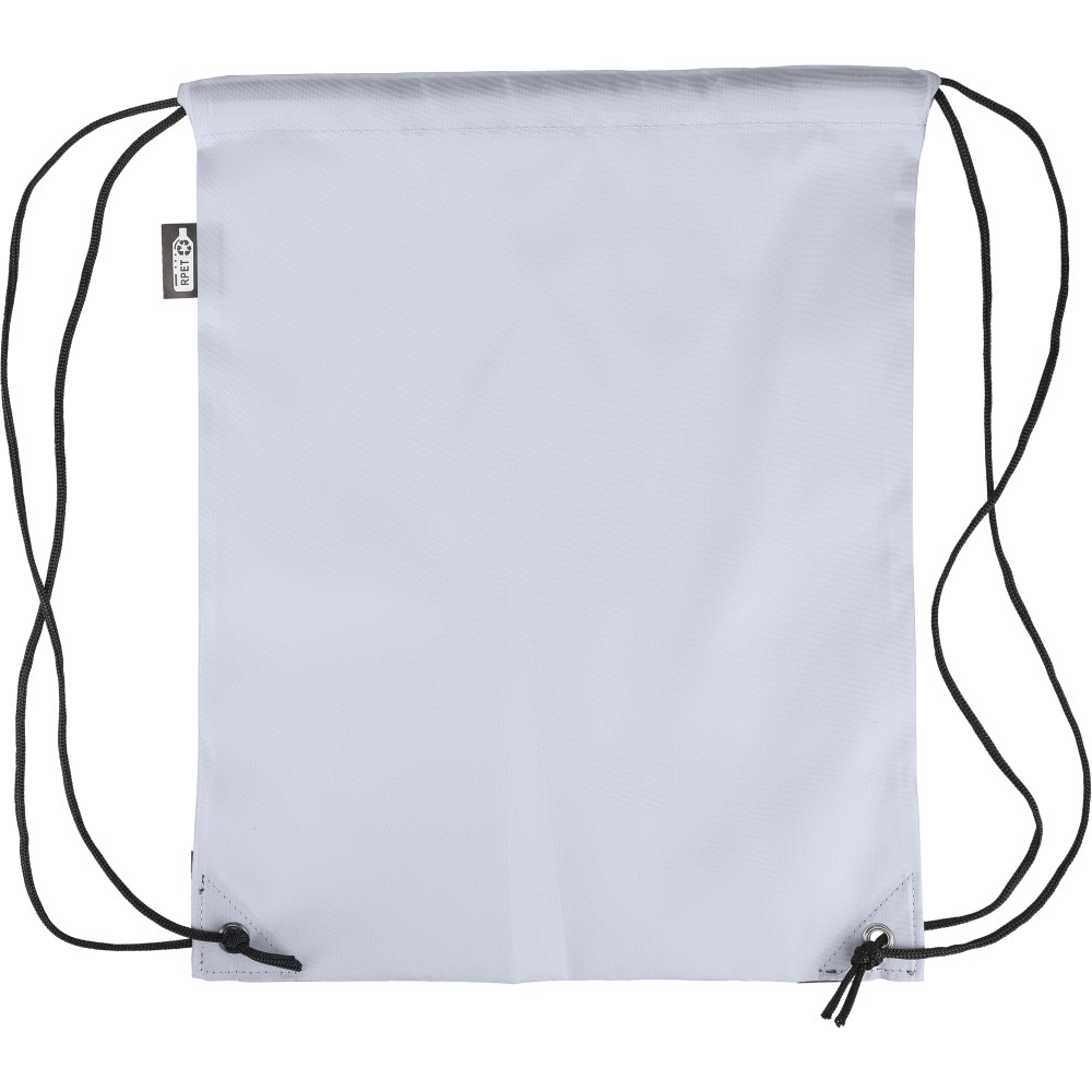 Tornazsák 210D poliészter anyagból, fekete PU sarokerősítéssel az elején, és belső varrással. Fekete nylon húzózsinórral, egy rekesszel. Űrtartalom: 5 liter, teherbíró képesség: 7 kg. rPET címkét tartalmaz. Emblémázás: Szitanyomás