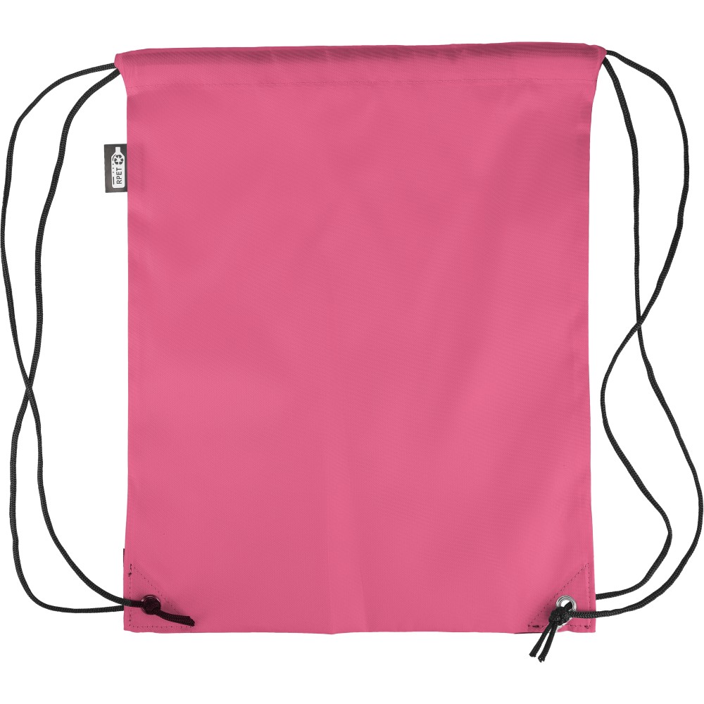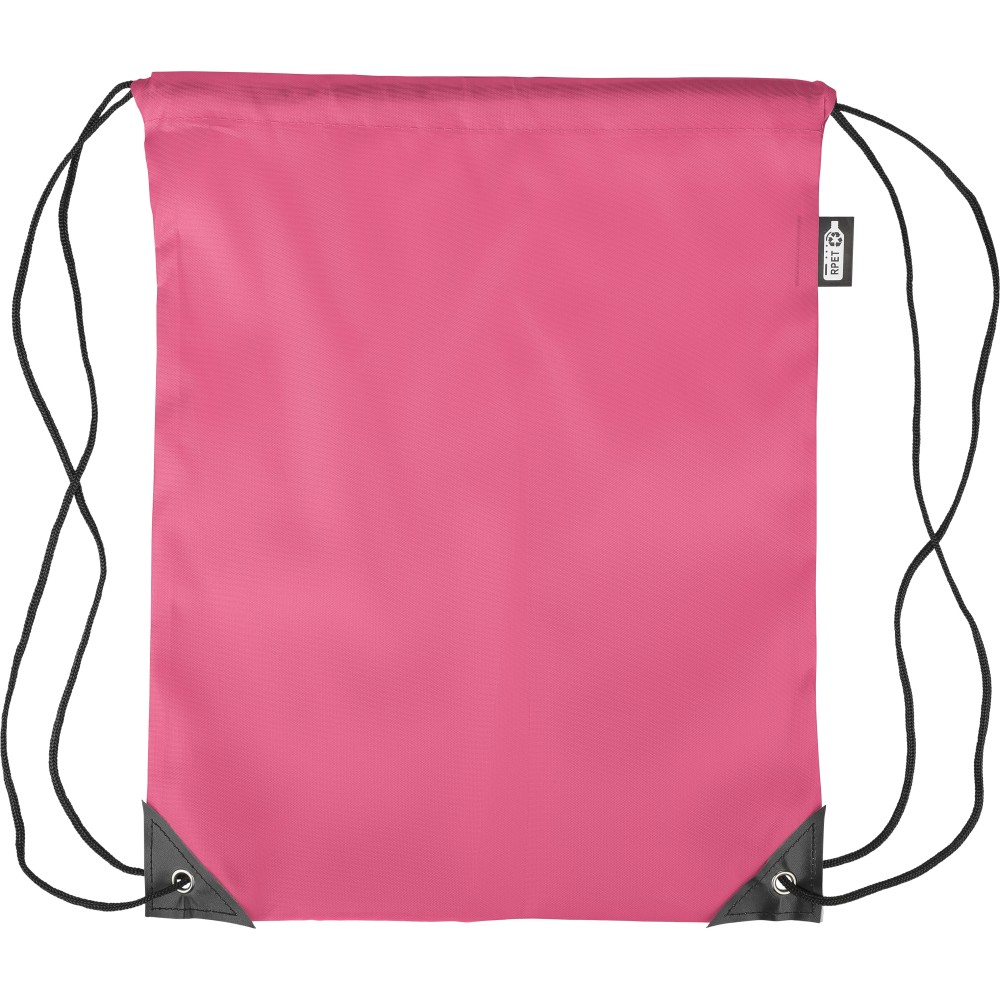 Tornazsák 210D poliészter anyagból, fekete PU sarokerősítéssel az elején, és belső varrással. Fekete nylon húzózsinórral, egy rekesszel. Űrtartalom: 5 liter, teherbíró képesség: 7 kg. rPET címkét tartalmaz. Emblémázás: Szitanyomás