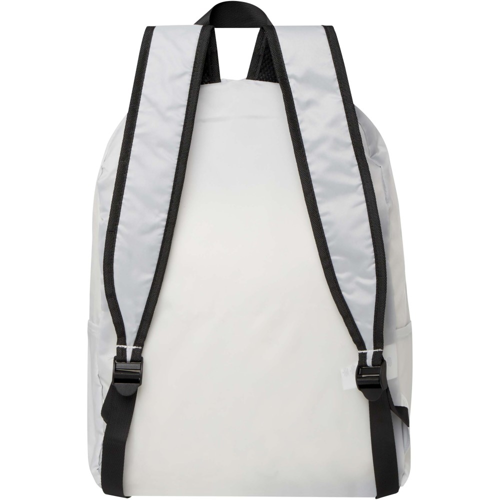 Ez a könnyű, mégis strapabíró hátizsák a kényelem és praktikusság jegyében készült, és könnyedén egy kompakt tasakba hajtható, amelyen szövettáska hurok található a kényelmes hordozás érdekében - ideális utazók, túrázók és a mindennapi használat számára. Cipzáras főrekesszel, cipzáras elülső zsebbel, két oldalsó zsebbel és állítható vállpántokkal rendelkezik. PVC-mentes újrahasznosított poliészterből készült. Űrtartalma: 15 liter. Emblémázás: Szitanyomás
