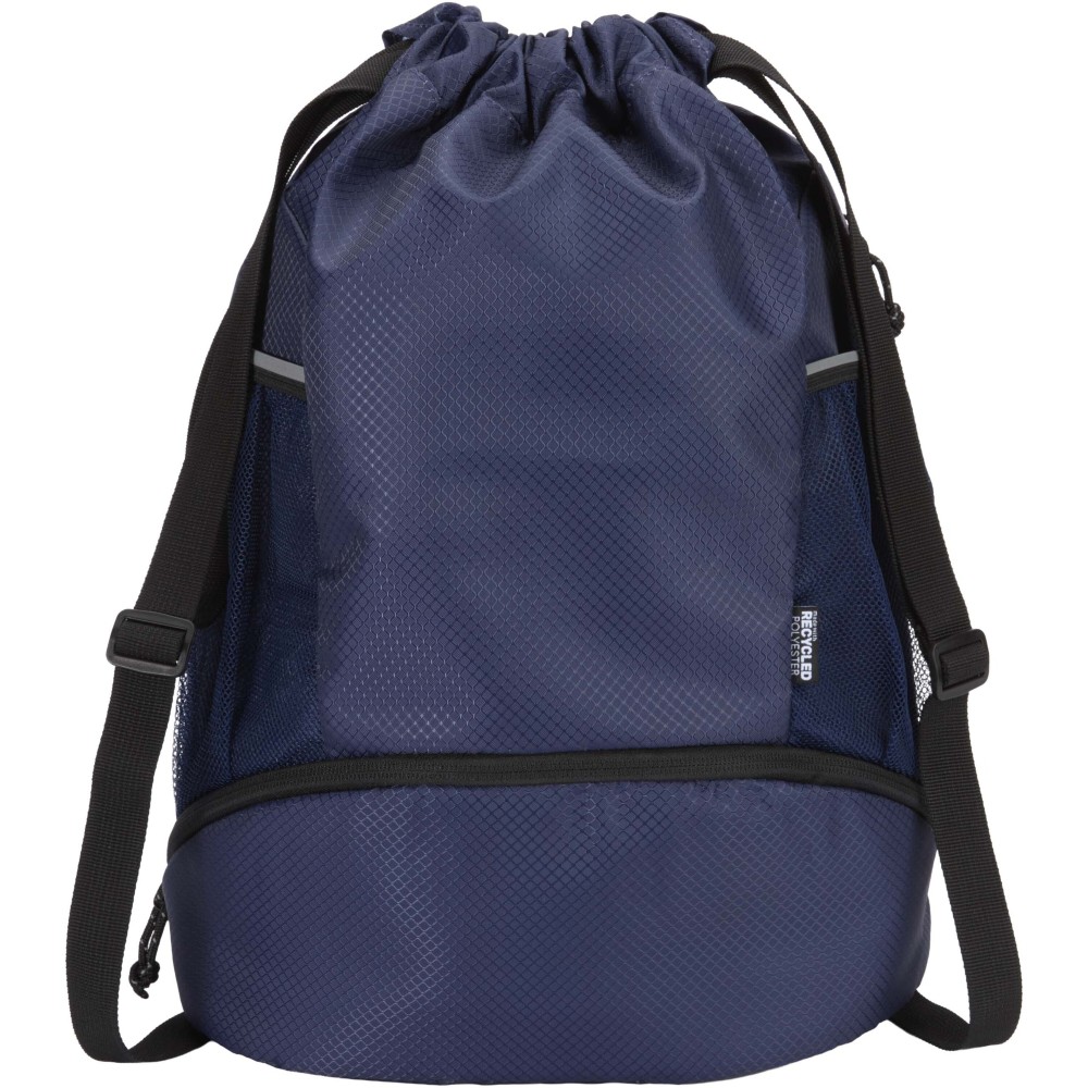 A Nomad sport húzózsinóros táska GRS tanúsítvánnyal rendelkező, újrahasznosított ripstop anyagból készült, vízlepergető felülettel, GRS tanúsítvánnyal rendelkező RPET béléssel és fényvisszaverő elemekkel. Aktív életmódot folytatók számára tervezték, ideális a mindennapi edzéshez és sporttevékenységekhez. Tágas fő rekesze: elfér benne ruházat, törölköző vagy akár egy kosárlabda is. Külön alsó rekesze biztosítja a cipők vagy használt ruhák elkülönített tárolását. Két oldalsó hálós zsebbel rendelkezik fényvisszaverő részletekkel, egy rejtett cipzáras zsebbel az értékek számára, valamint állítható hevederpántokkal a kényelmes hordozás érdekében. Emblémázás: Szitanyomás