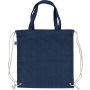 Újrahasznosított farmeranyagból készült húzózsinóros táska 40 × 38 cm méretben, 2,5 × 50 cm hosszúságú fülekkel és húzózsinóros záródással. A külső felületen újrahasznosított alapanyagra utaló címke található, vállpántként vagy kézi hurokként is hordható. Emblémázás: Szitanyomás