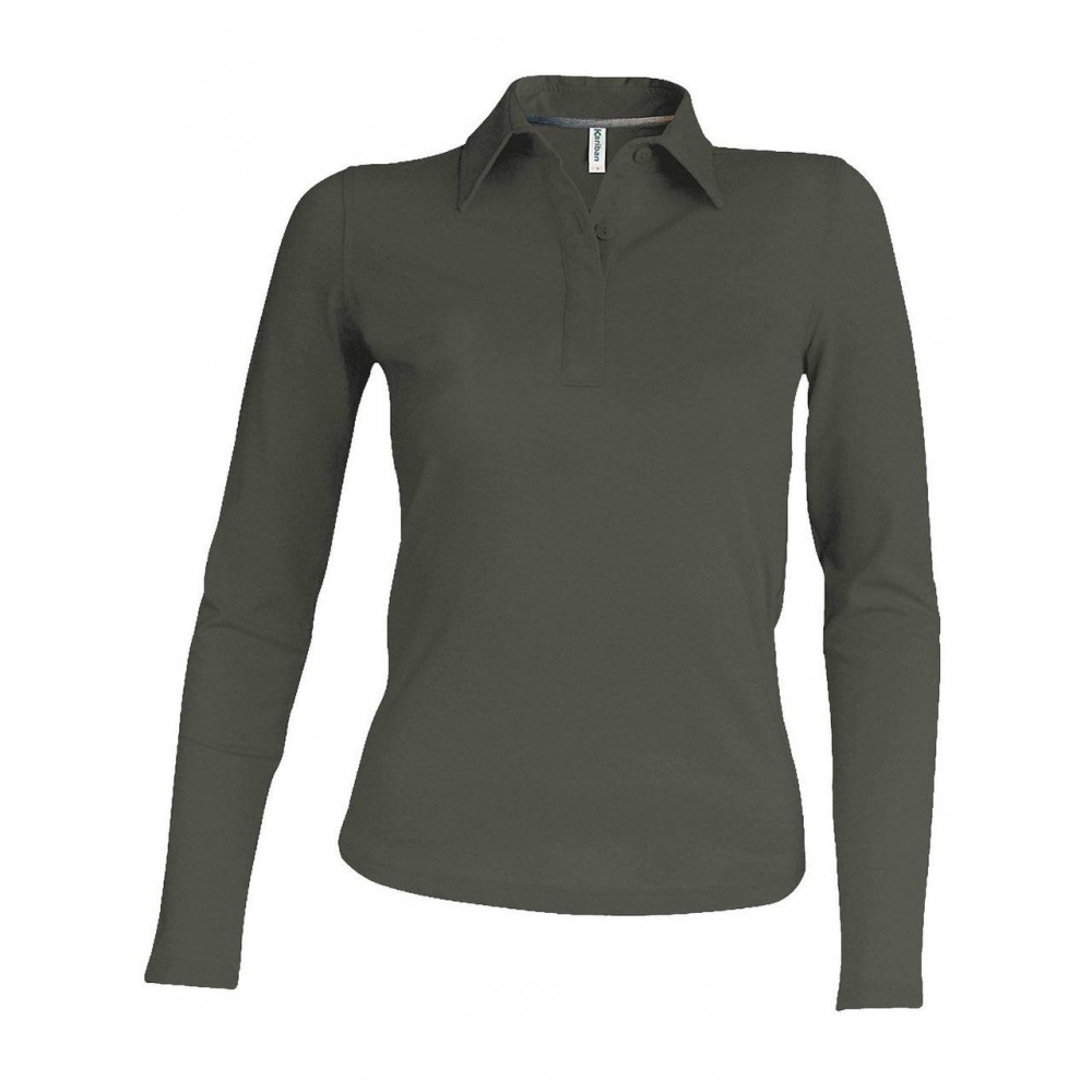 Kariban női hosszúujjú piképóló, Dark Khaki