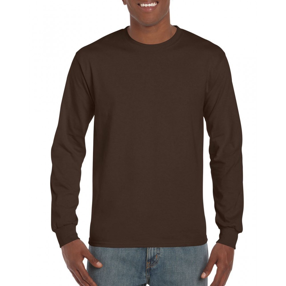 Gildan Ultra férfi hosszúujjú póló, Dark Chocolate