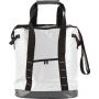 Hűtőtáska hosszú füllel és állítható vállpánttal. A felső cipzár vízálló. PEVA, 40C vitorlavászon. Emblémázás: