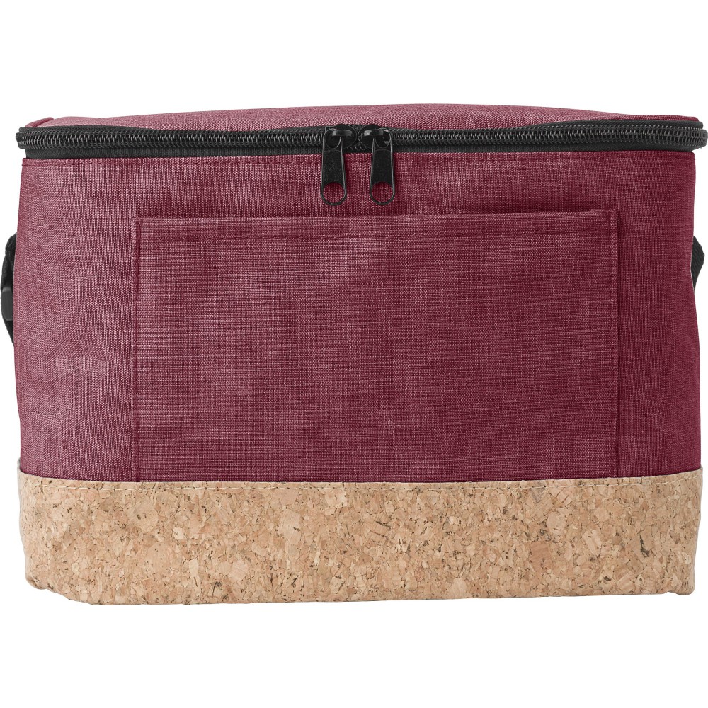 Poliészter (600D) hűtőtáska cipzárral és parafa aljjal, hat darab 0,5 literes doboz számára. A belső anyag EVA. Emblémázás: Szitanyomás