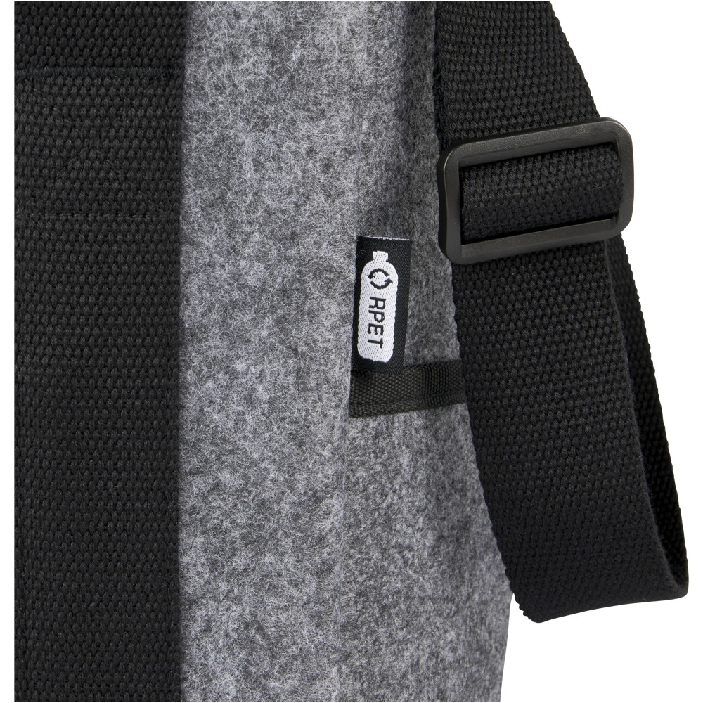 Nagyméretű hűtőtáska kiváló minőségű puha és tartós, GRS tanúsítvánnyal rendelkező újrahasznosított filcből. Tartalmaz egy nagy fő rekesszel (hat 1,5 literes palack), amely élelmiszer-biztonságos és extra vastag, nagy sűrűségű PEVA hőszigeteléssel van bélelve, amely órákon át hidegen tartja az italokat és a frissítőket. Felső cipzáras záródás, elülső zseb és két oldalsó zseb extra tároláshoz. Állítható hosszú pamut szőtt vállpántok (55 x 3,8 cm) és 2 szőtt pamut fogantyú (25 x 3,8 cm), felső kampóval és hurokkal zárható. Könnyen tisztítható. Űrtartalom: 21 liter. GRS tanúsítvánnyal rendelkező újrahasznosított poliészter. Emblémázás: Hímzés, Szitanyomás