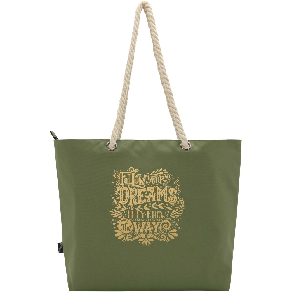 A Panama hűtőtáska GRS tanúsítvánnyal rendelkező újrahasznosított poliészterből készült, és nagy, cipzáras főrekesszel van ellátva. Kiváló minőségű alumínium fóliával bélelt belső résszel és pamut fülekből áll. Ideális bevásárláshoz, strandoláshoz vagy egy parkbéli kiránduláshoz. Űrtartalma: 23 liter. Teherbírás: akár 10 kg. PVC-mentes. Emblémázás: Szitanyomás