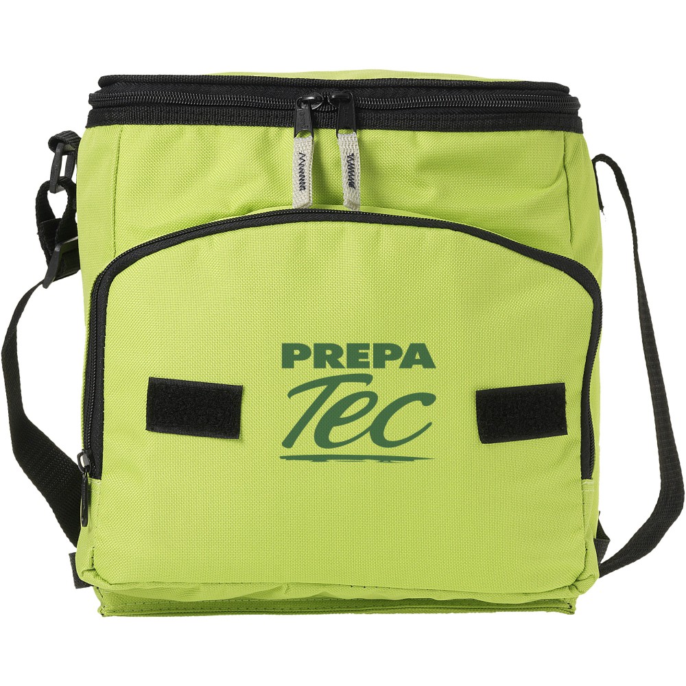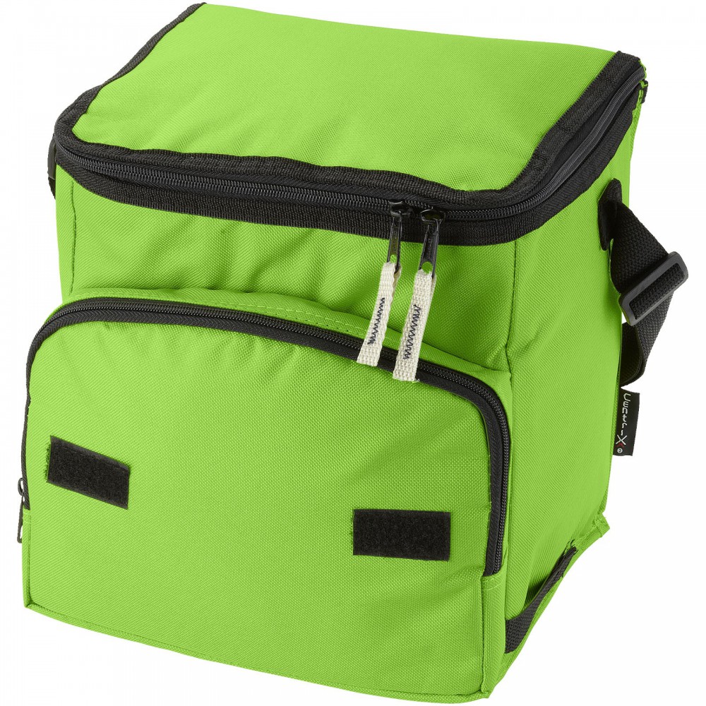 Összehajtható hűtőtáska cipzáras fő rekesszel és cipzáras elülső zsebbel. Állítható vállpánt. A hűtőtáska laposra hajtható az elülső zseben található horog és hurok segítségével. Egyéb kiegészítőt nem tartalmaz. Emblémázás: Szitanyomás
