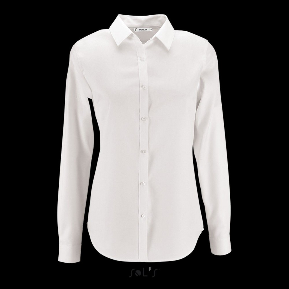 82% pamut és 18% poliészter anyag. Hosszúujjú, karcsúsított női ing halszálkamintás, texturált mintázattal. Egygombos, allítható kézelő. 125 g/m2. XS-2XL. Emblémázás: Hímzés