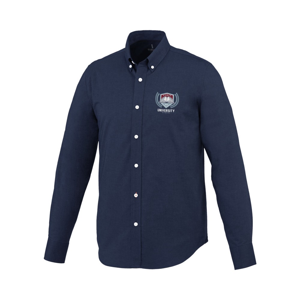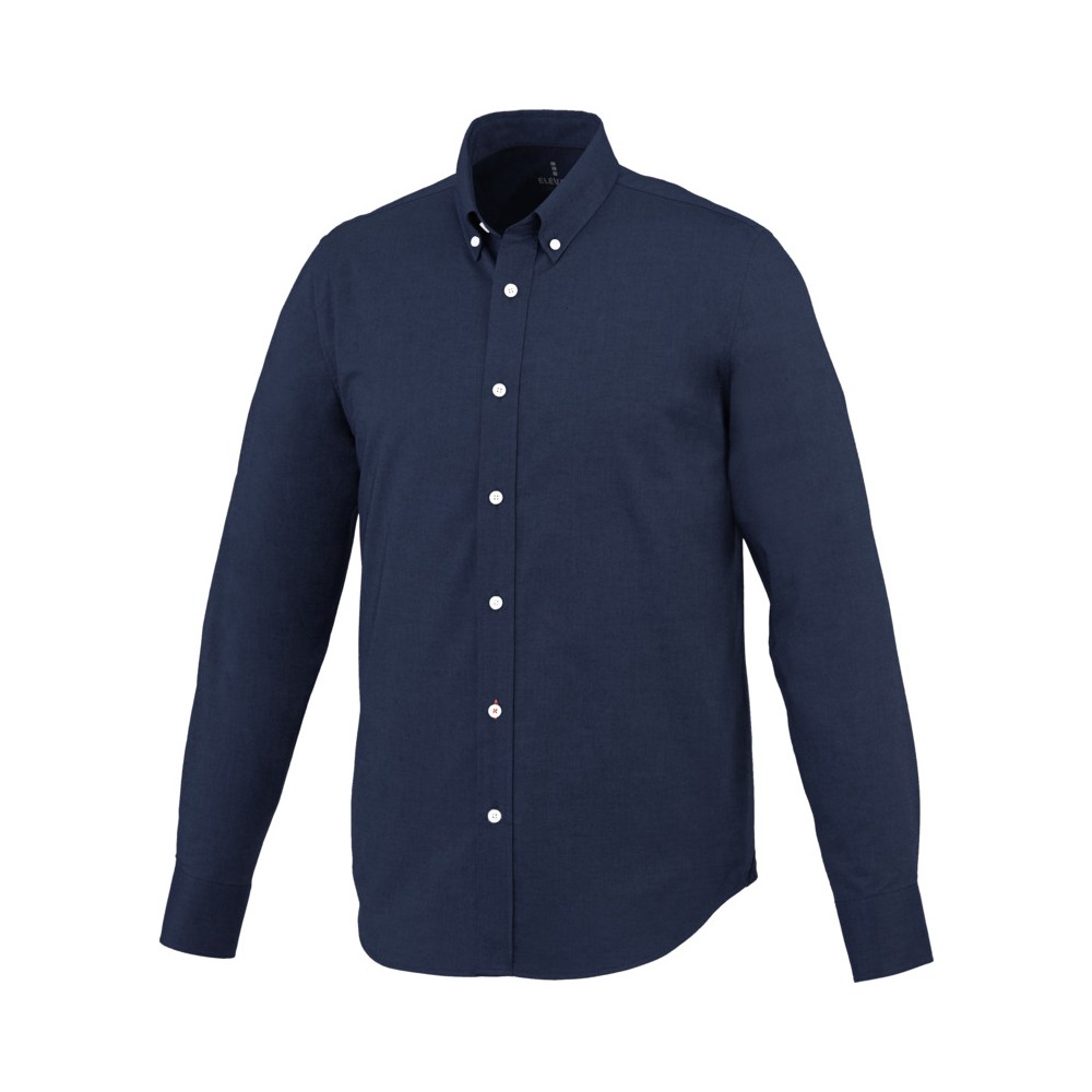 Normál szabásvonal. Elevate logóval gravírozott, fehér gombok. Alulról a második gomblyuk narancssárga öltésekkel dekorálva. Két gombos, állítható kézelő gombolás. Tónusos logónyomat hátul. Szatén szegély a nyakvonalban. Legombolható gallér (férfi). 100% pamut Oxford anyag. Emblémázás: Hímzés