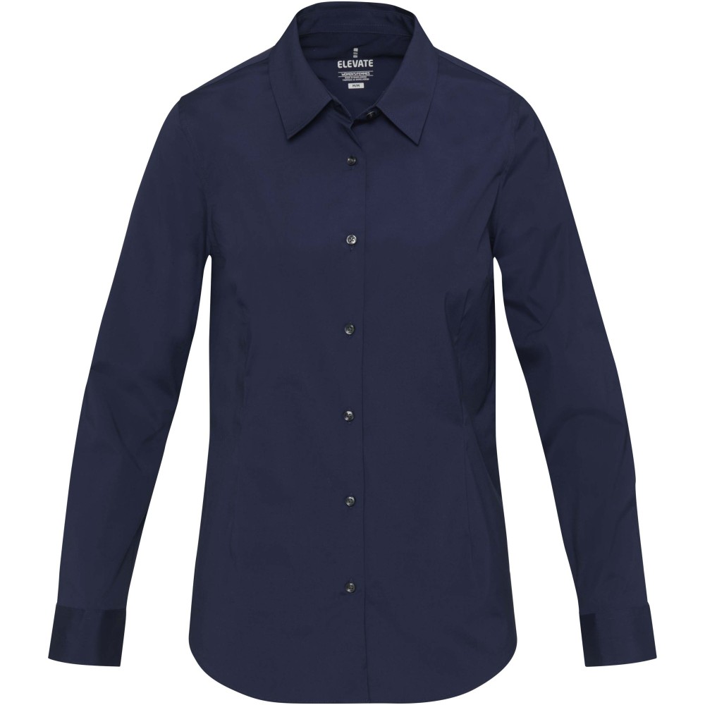 A Carnelian hosszúujjú női poplin ing letisztult stílust és rugalmas, nőies szabást kínál. Prémium, BCI minősítésű, rugalmas pamutból készült, finoman szőtt, 30 denieres, kétrétegű, csavart fonalszerkezete puha, kiváló minőségű kidolgozást és tartós formát biztosít. Normál szabással, elöl és hátul formázó bevarrással tervezték, így előnyös sziluettet és egész napos kényelmet kínál. Időtlen, normál gallérral készült, a Carnelian ing ötvözi az eleganciát és a teljesítményt, így kifinomult, alapvető darab a mindennapi viselethez. 3% elasztánból és 97% BCI pamutból készült puplin, 133 g/m2. Emblémázás: Hímzés