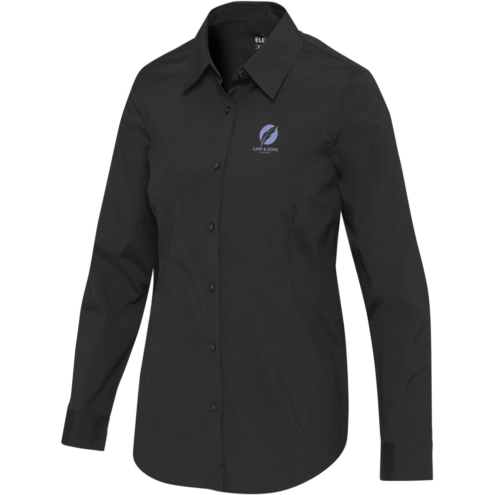A Carnelian hosszúujjú női poplin ing letisztult stílust és rugalmas, nőies szabást kínál. Prémium, BCI minősítésű, rugalmas pamutból készült, finoman szőtt, 30 denieres, kétrétegű, csavart fonalszerkezete puha, kiváló minőségű kidolgozást és tartós formát biztosít. Normál szabással, elöl és hátul formázó bevarrással tervezték, így előnyös sziluettet és egész napos kényelmet kínál. Időtlen, normál gallérral készült, a Carnelian ing ötvözi az eleganciát és a teljesítményt, így kifinomult, alapvető darab a mindennapi viselethez. 3% elasztánból és 97% BCI pamutból készült puplin, 133 g/m2. Emblémázás: Hímzés