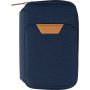 RPET utazótárca PU elemekkel és cipzárral, RFID védelemmel. Tartalmaz mobiltelefon-tartót és több rekeszt, köztük egy kis elülső zsebet. Barna kartondobozba egyedileg csomagolva érkezik. Emblémázás: Szitanyomás